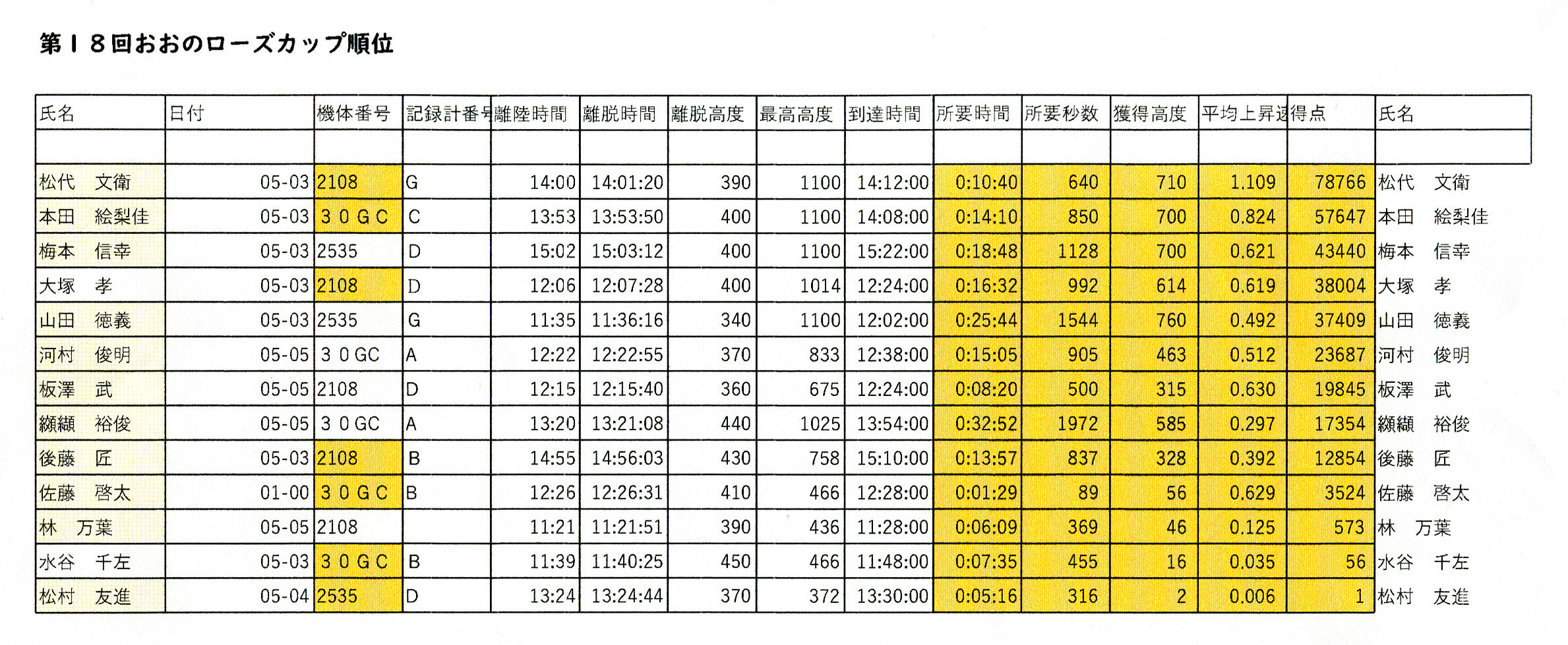 点数はビックリするような数字ですが、これも大野ならでは。世界中でこんなに高得点になるグライダー競技会はないのではないでしょうか。