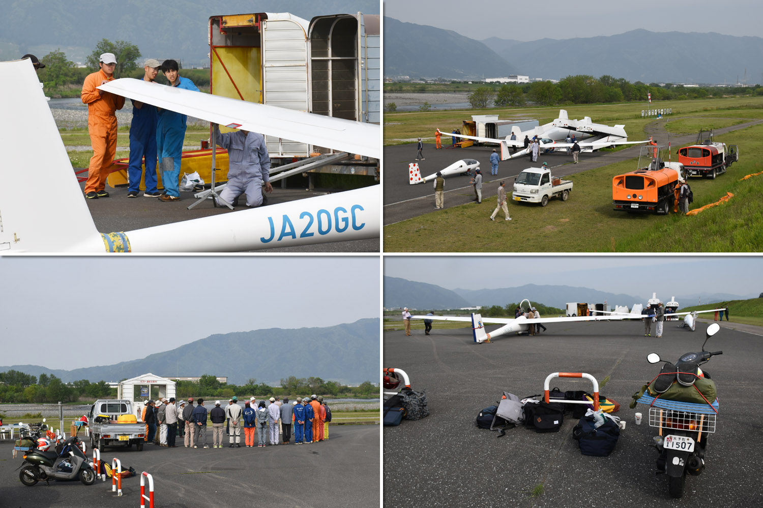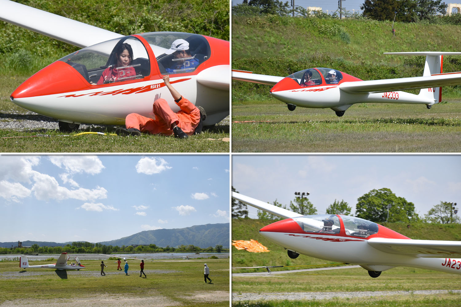 学生 10 名、OGC 会員 16 名 (教官含む) と、比較的少人数でスタート、機体は ASK13、ASK21、ASK23 の 3 機体制。 風がやや強めなものの、寒くなく、上空の雲も良い感じでしたが、上空はそこらじゅうに沈下の落とし穴だらけでした。