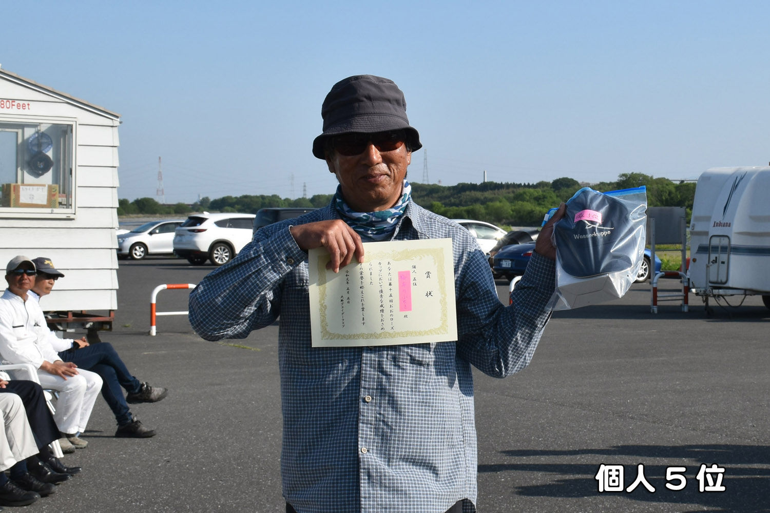 ブリーフィング後、初日のデイリートップ (ただ一人得点をした纐纈選手)の表彰を行いました。