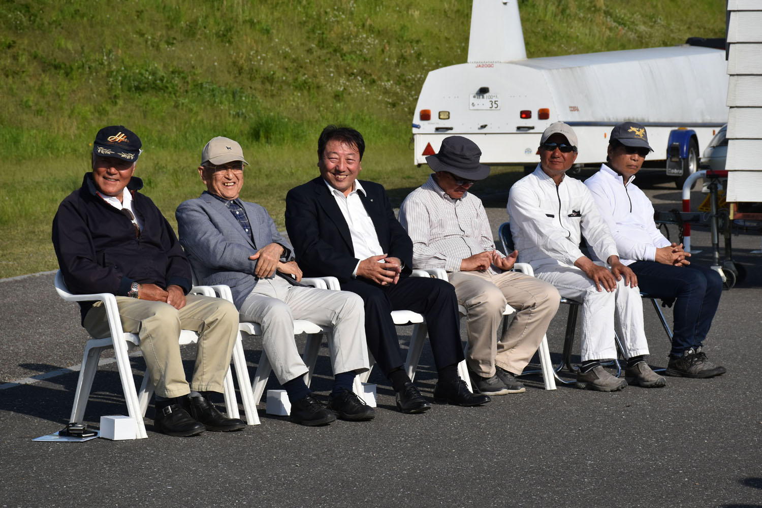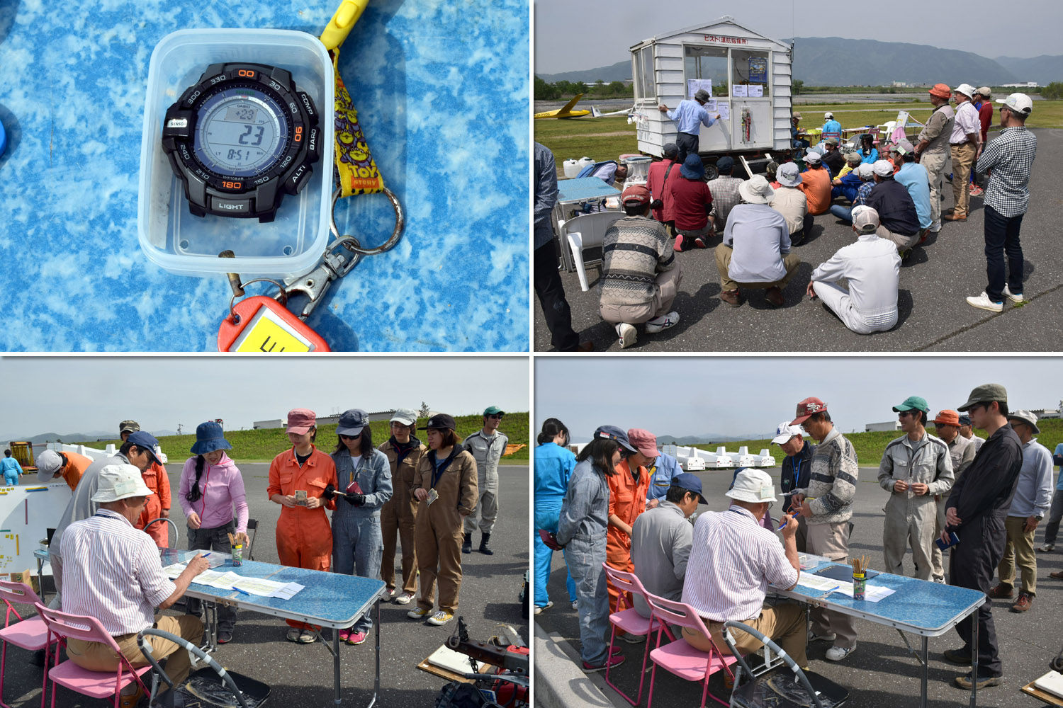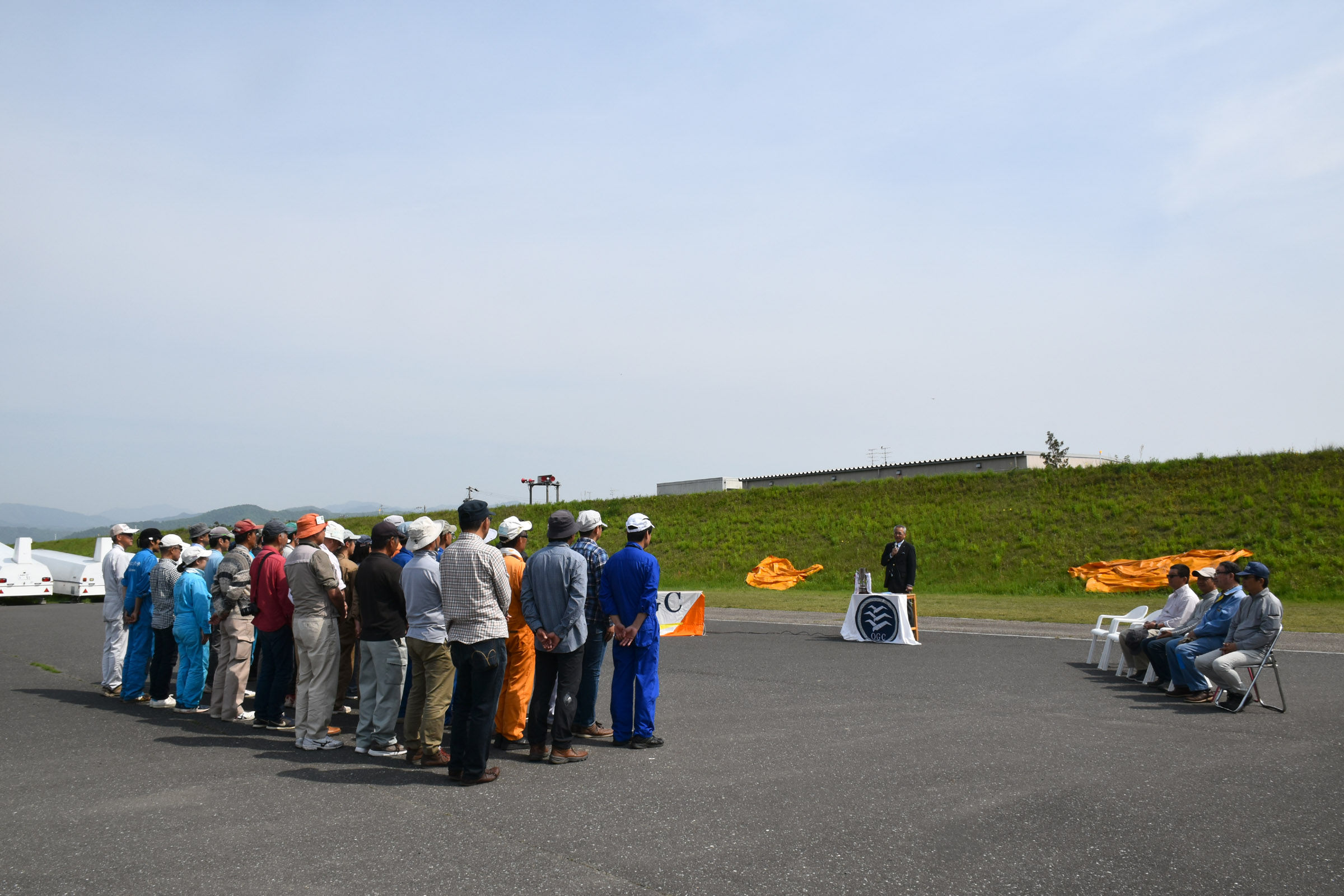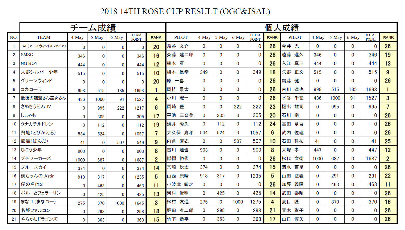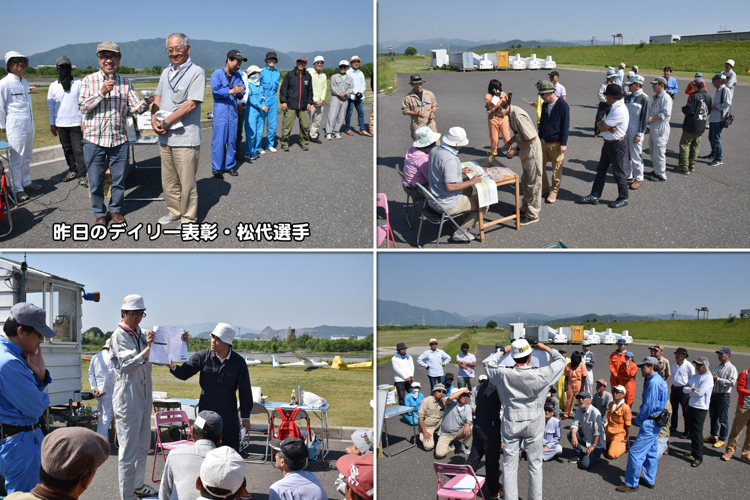 宇佐美大野町長をお迎えしての開会式の後、途中で風待機もありましたが複座3機と単座3機の計6機を使い、総発数54回で競技は無事成立しました。 残念ながら強いプラスは望めず、明日に期待がふくらむ初日となりました。