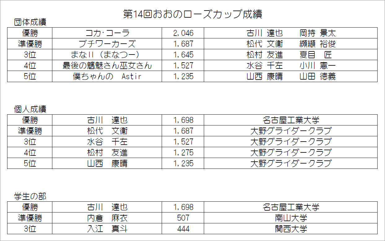 岐阜大学の平池選手は+5 にヒットして上昇、ところが計測時計は 1,213m を記録しており飛行時間係数のみの得点になりました。