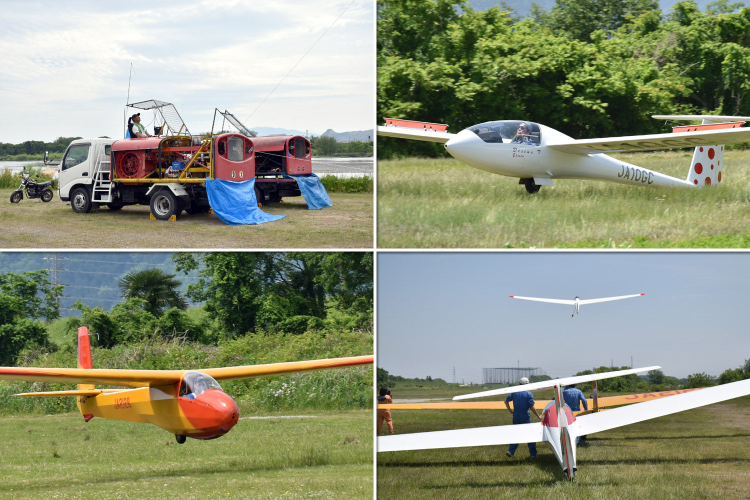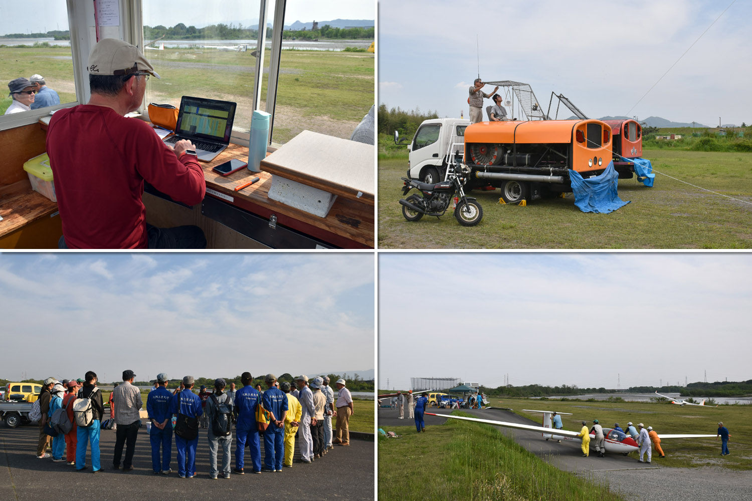 風の強さと大きい沈下で K13 は早々に撤収、ローズカップ単座希望の選手のチェックフライトは終了。 K21 の単機発航となりましたが、殆どがバッタで途中 3 発の 20 分降りて来いフライトがありました。 体験搭乗 4 回をこなし参加全員が一巡したところで撤収、総発航 30 発でした。