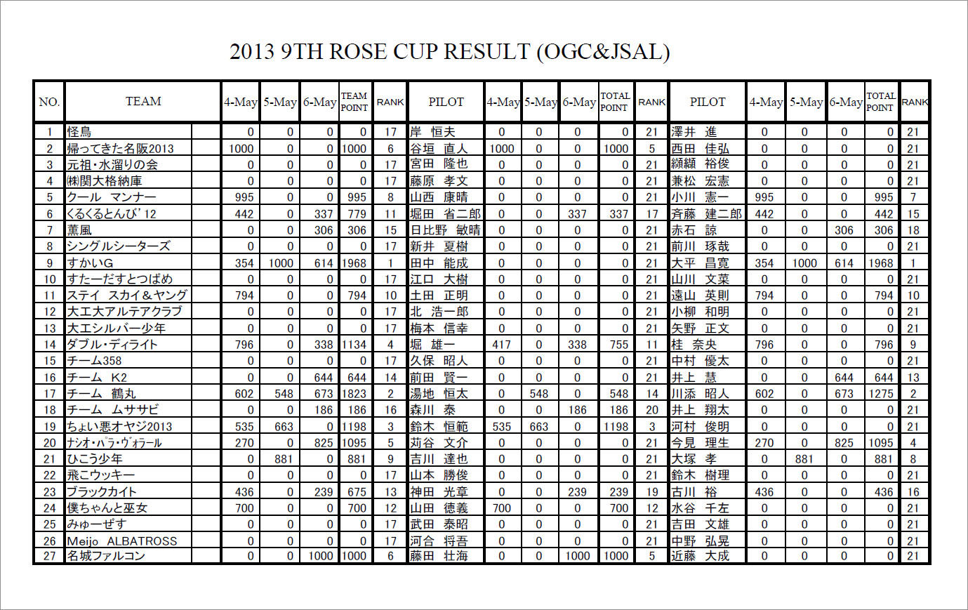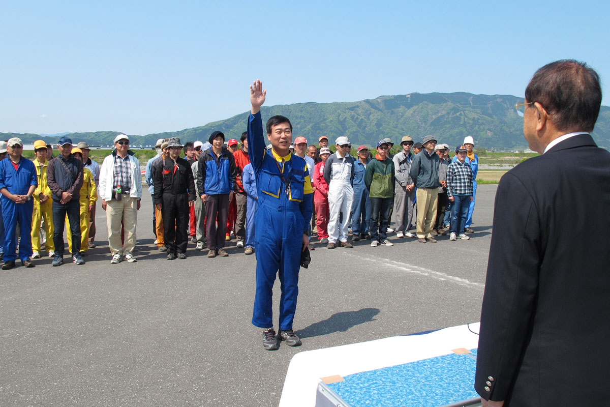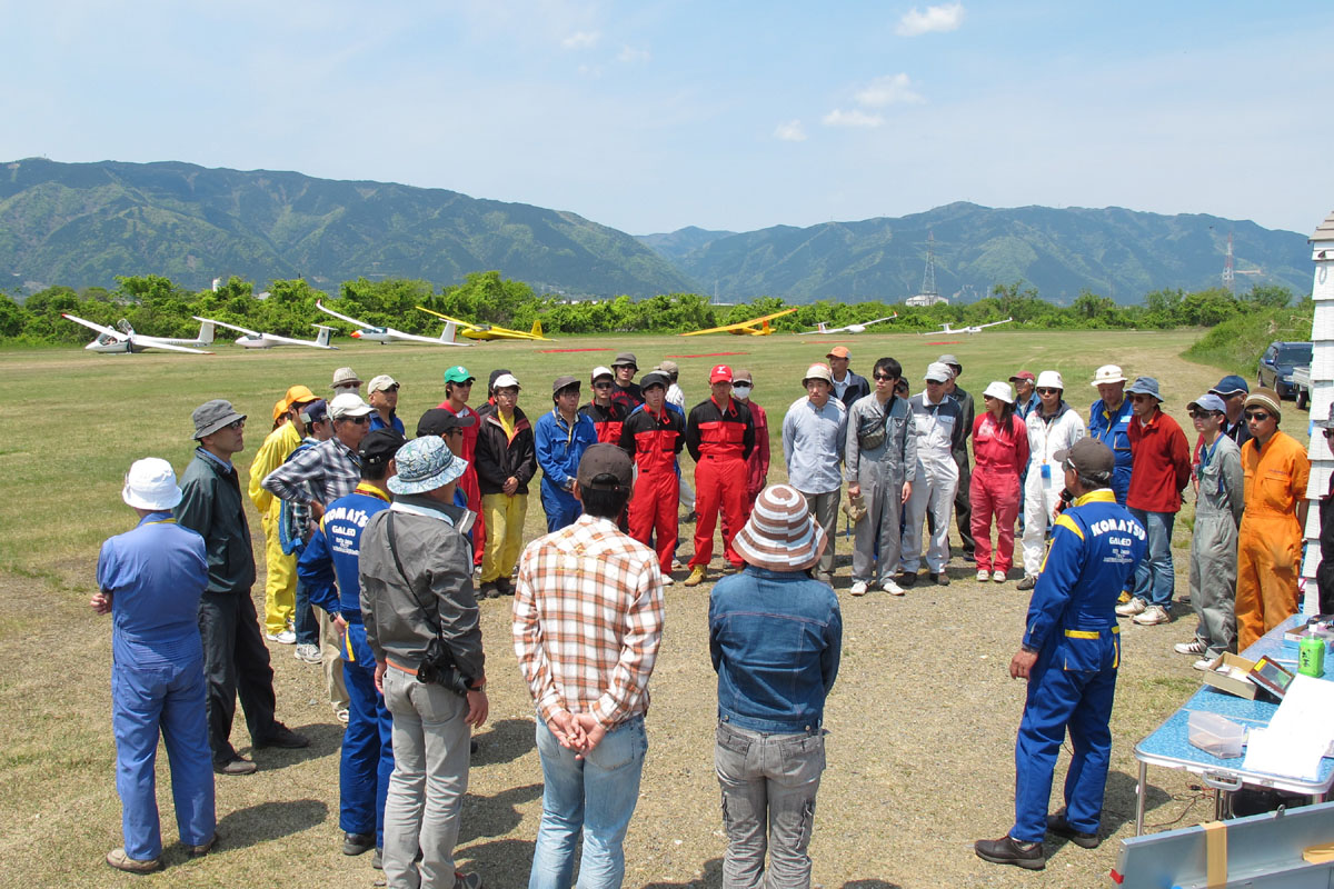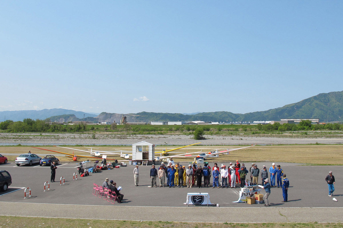 今年の参加チームは 27、総勢 54 名、機体は複座 3 機、単座 4 機での競技です。 選手宣誓は 昨年優勝の "僕ちゃんのASTIR" チームの 山田徳義選手が力強く行いました。