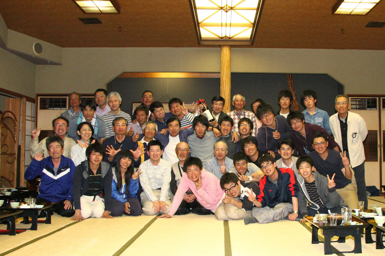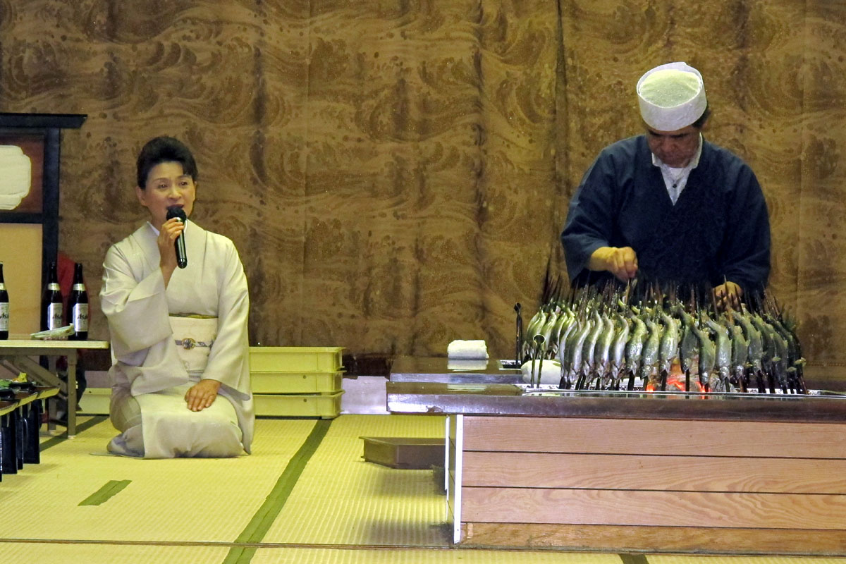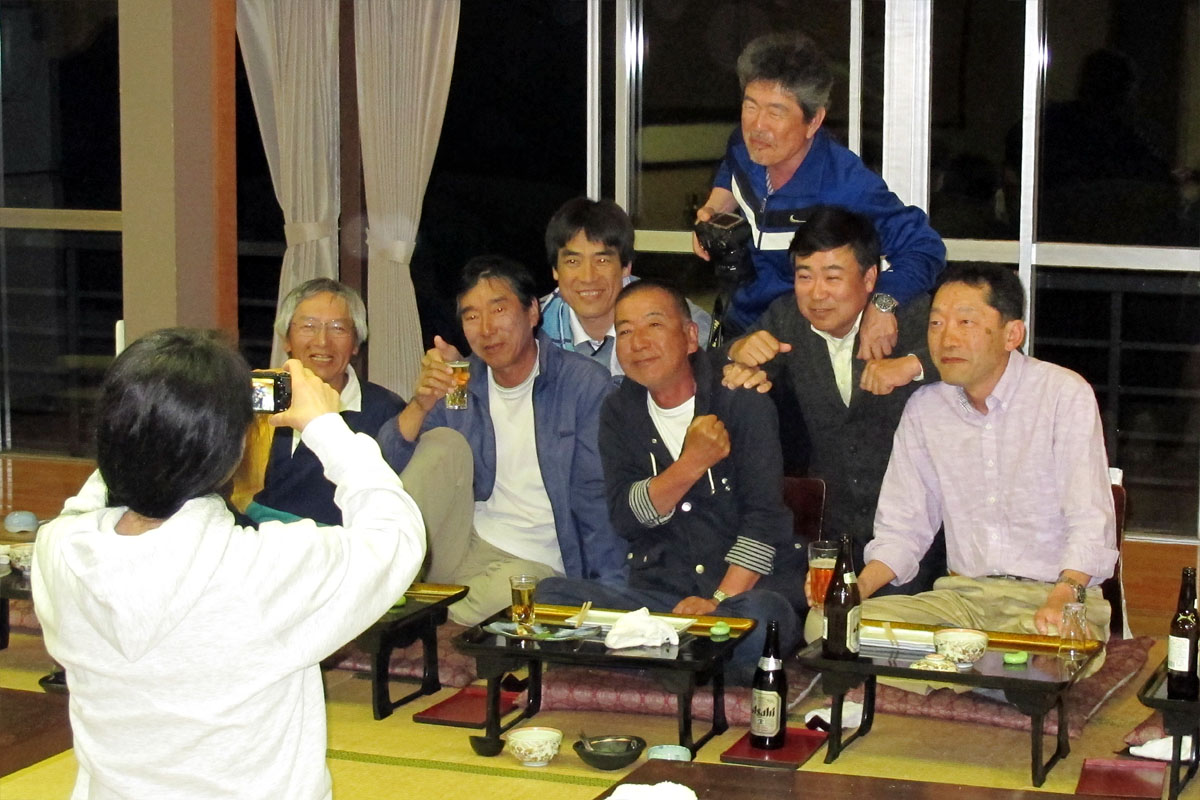 会場は揖斐川丘苑、若鮎づくしの会席を味わいながら、参加選手の自己紹介と進みます。