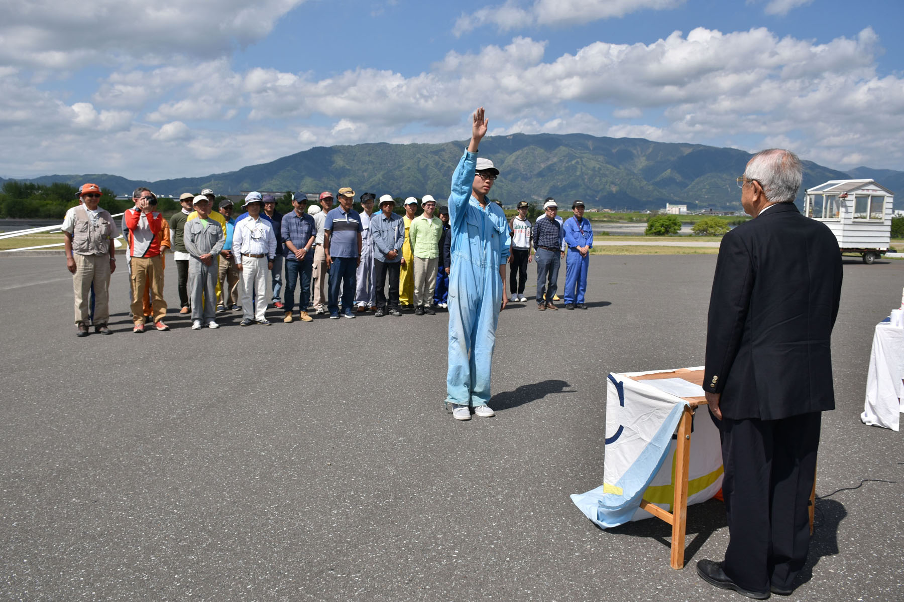 爽やかな晴天の下、杉山名誉会長 (前:大野町長)、宇佐美大野町長、日本滑空協会理事の八尾様をお迎えしての開会式の後、ピストを川上に移動して競技第一日目がスタートしました。