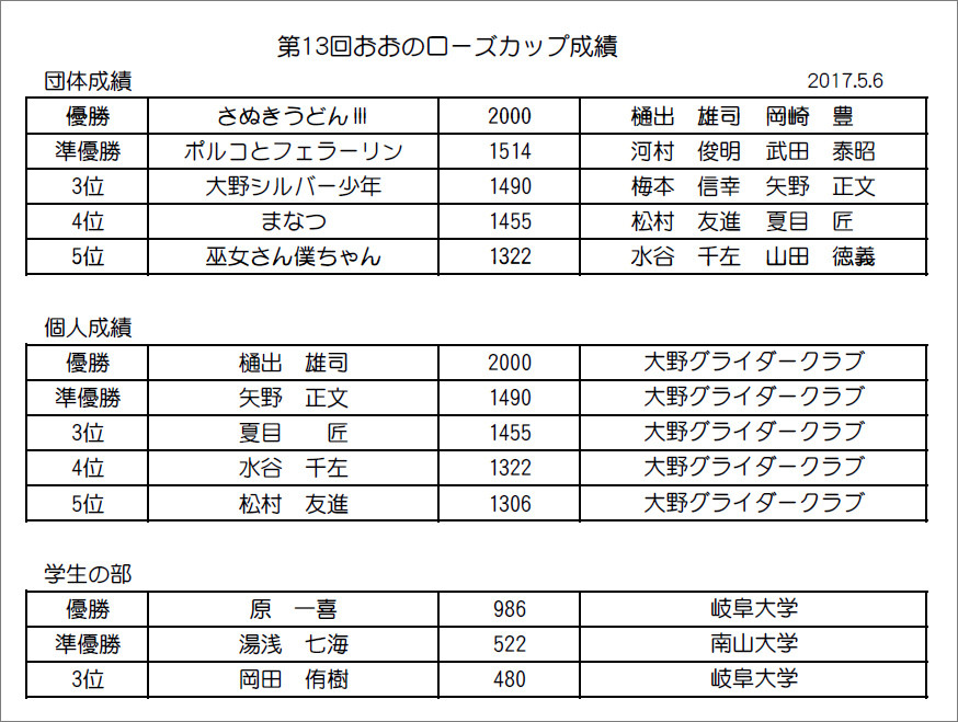 学生の部は岐阜大学の原くんが毎回のフライトで得点して勇者となりました。
