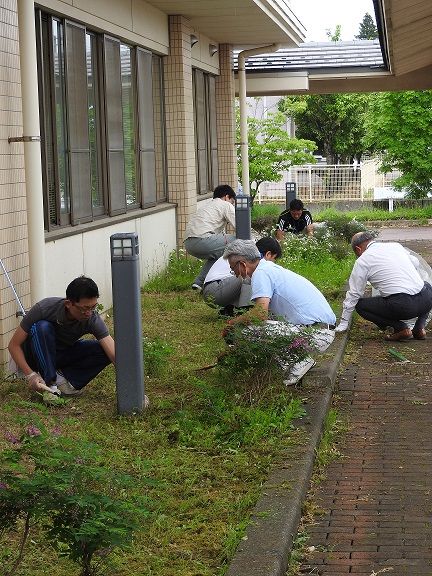 活動内容は、車いすの清掃、窓ふき、施設周りの除草です。