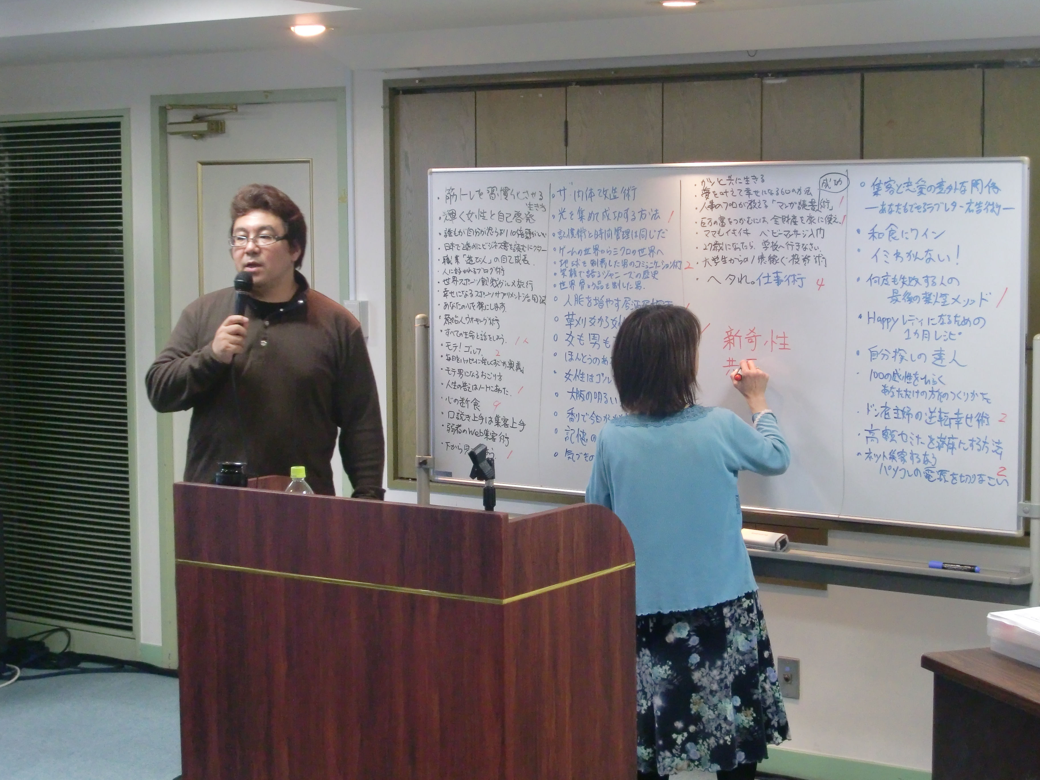 最初は『ミニまぐの女王』こと 谷口 祥子 さん と NLPの先生である 松橋 良紀 さんとの合同出版記念パーティー。その後は天才工場の吉田さんが主催する人脈パーティーへ皆で乱入。受付でいきなりパネラーに出演してほしいといわれ、パネルディスカッションを行ったが、訳の分からないうちに終わった感じでした(笑)。