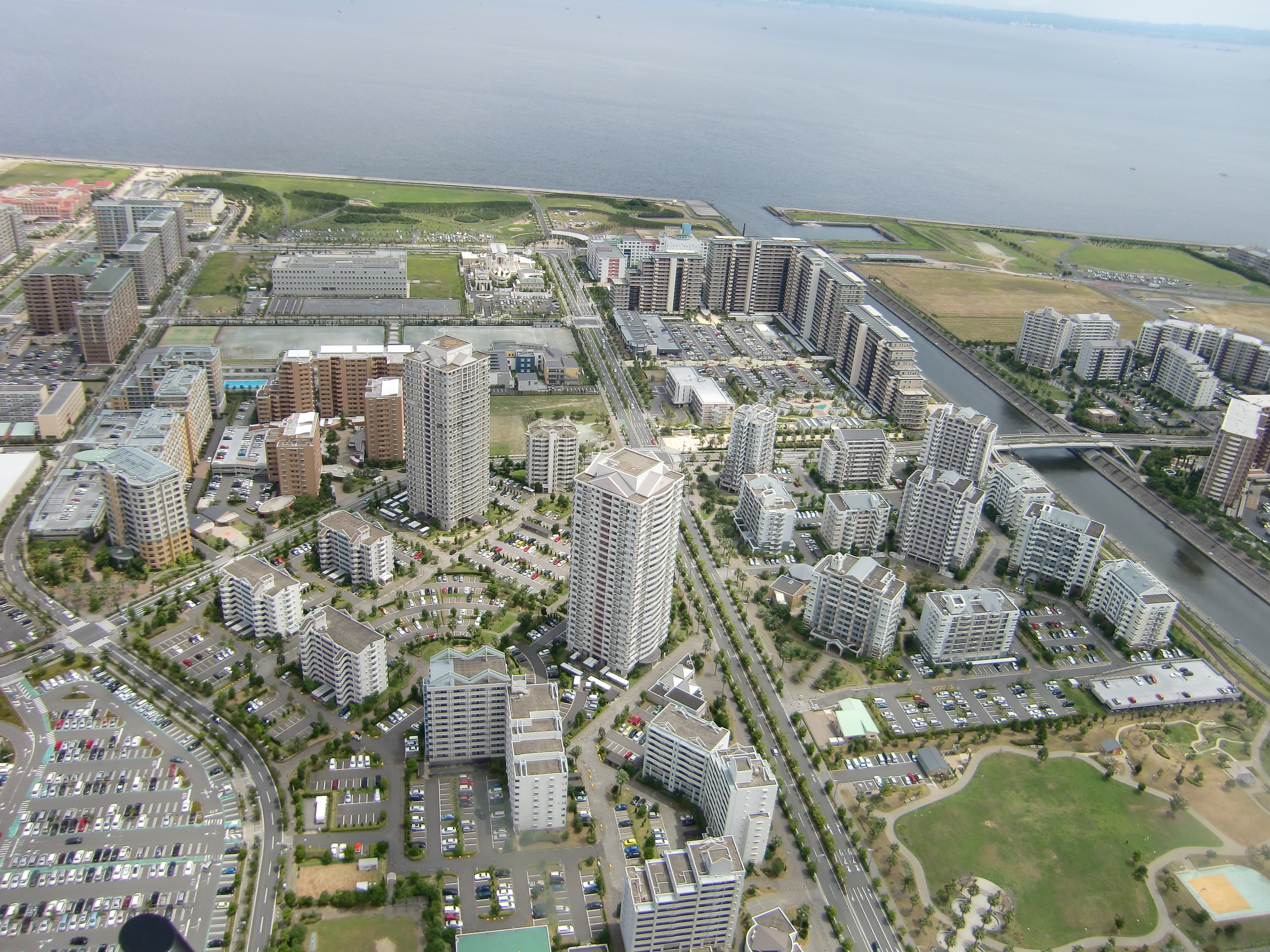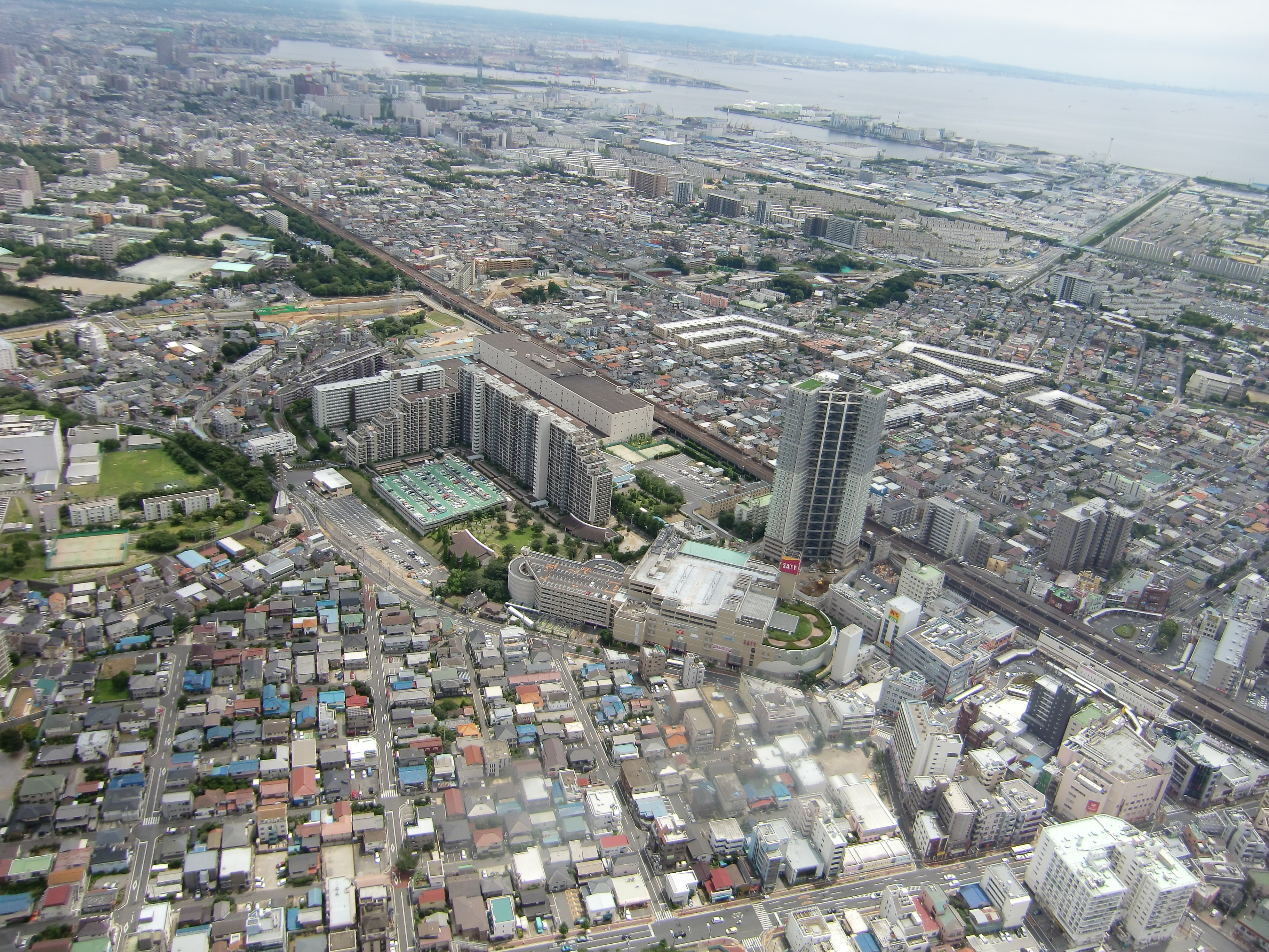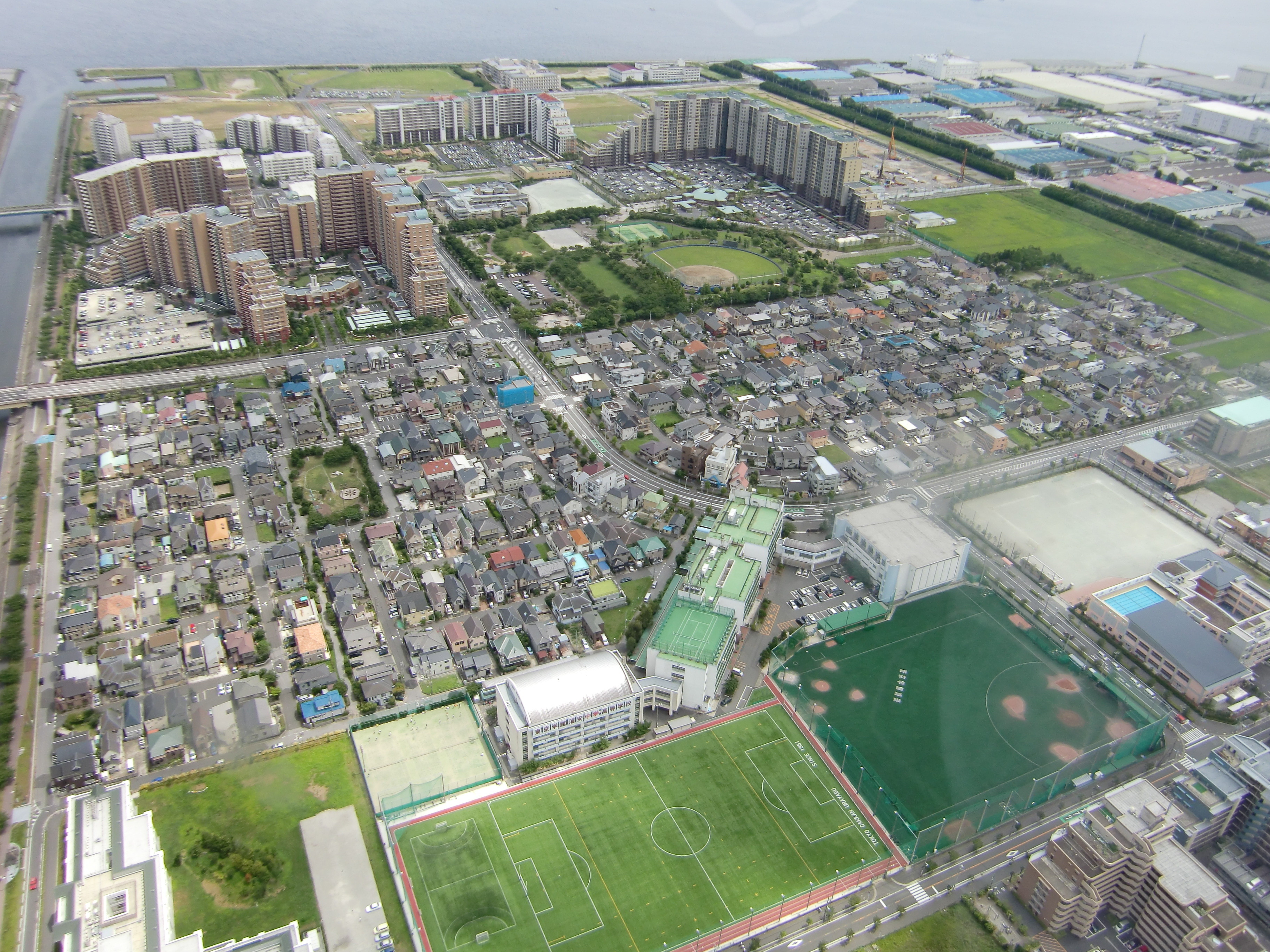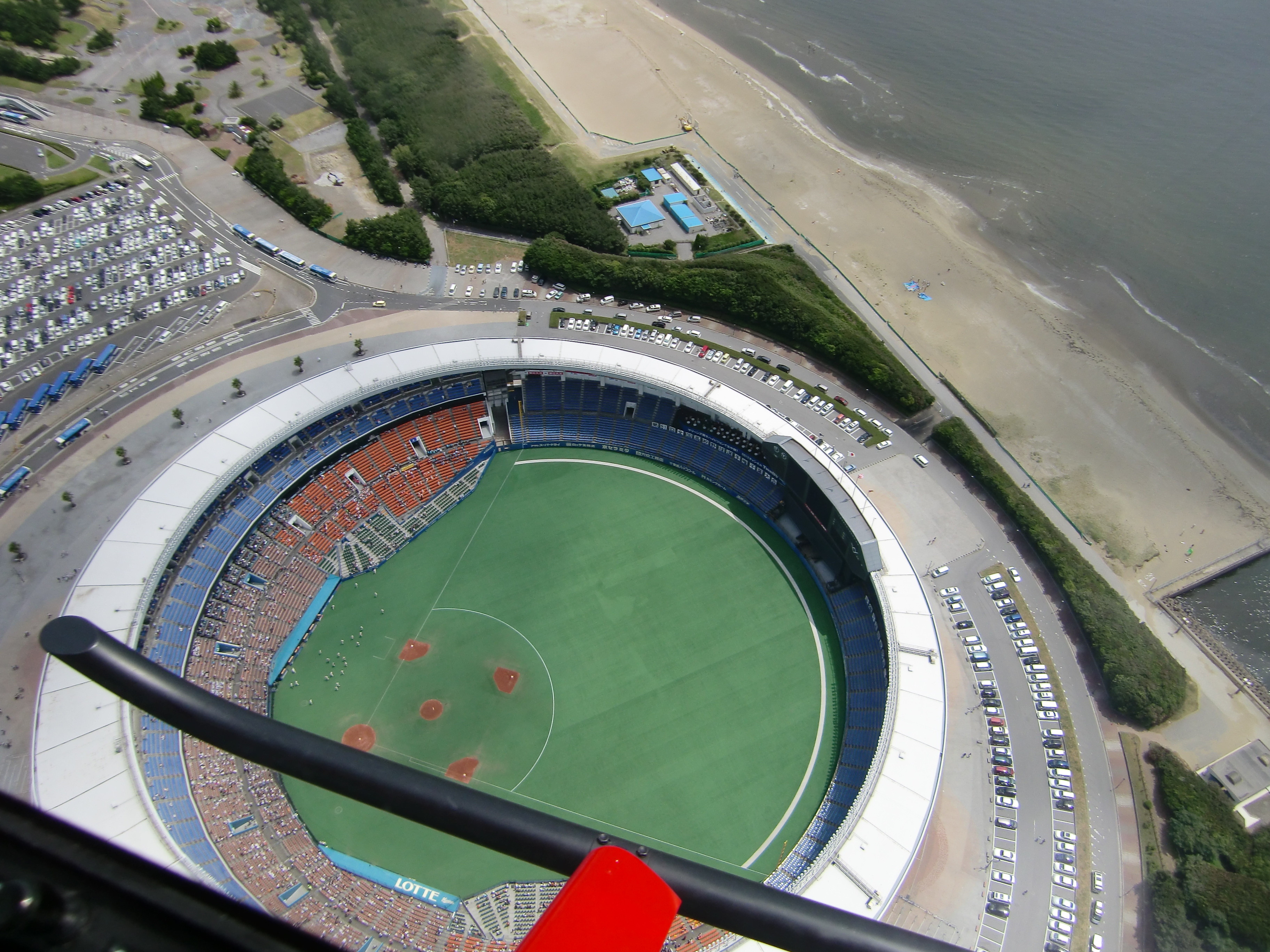 左は千葉マリンスタジアム上空 約 300メートル。中央は幕張メッセ。低空飛行なので街がよく見えます。