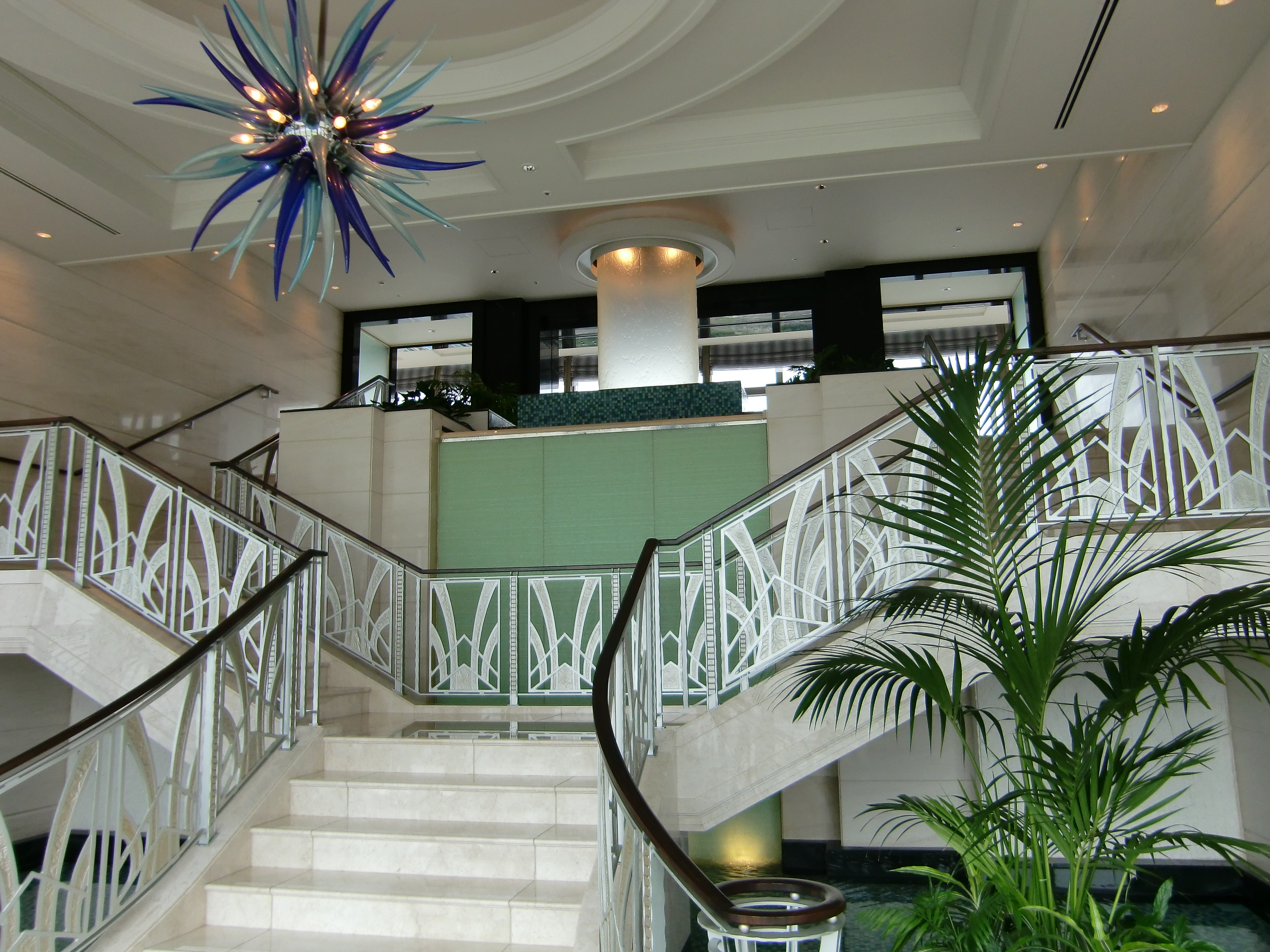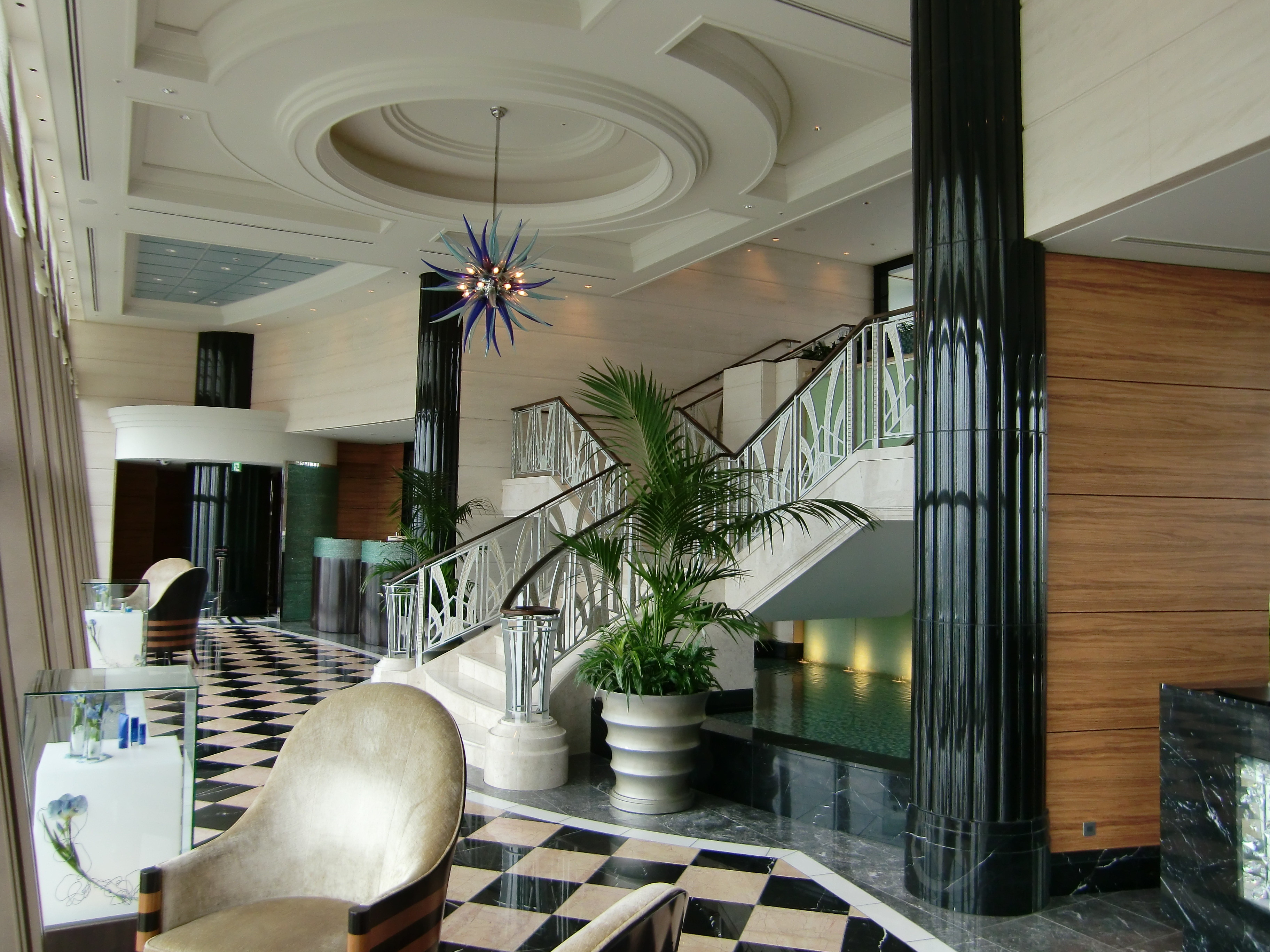 下の写真はSPAのエントランス。25Fから階段を降りていきます。東京湾のスカイラインが眺められる贅沢なジャグジーで非日常を味わう。SPAはラスベガスなどの米国の一流リゾートに劣らない設備で素晴らしい。なにより御覧の通り空いているのがいい!(笑)。ちなみにSPAの料金はメンバー千円、ビジターは五千円です。夜景が素敵でしたよ!