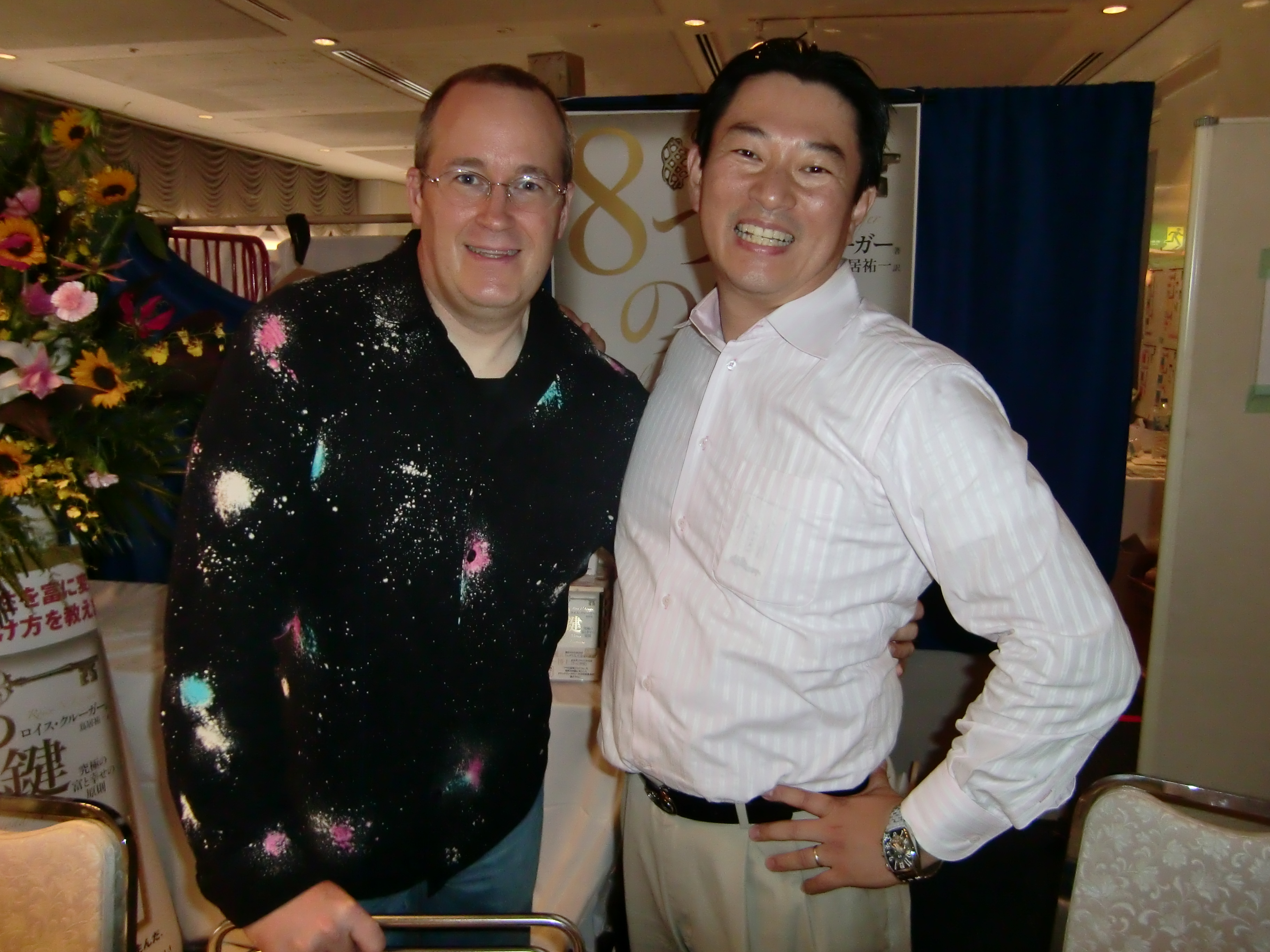 関谷さんの主な通訳実績は・・・ノーベル平和賞受賞者で元アメリカ副大統領 アル・ゴア をはじめ、マインドマップの開発者 トニー・ブザン、アンソニー・ロビンズ、人間関係・恋愛関係スペシャリストの ジョン・グレイ博士、 世界3大投資家の ジム・ロジャーズ、マーケティングの鬼才 ジェイ・エイブラハム など錚々たる顔ぶれ。名前を聞いただけでこっちがビビってしまいます(笑)。聞くところによると、帰国子女と言っても幼い頃にイギリスに3〜4年いただけという。勉強熱心で天才肌ではなく、完全に努力の人だ。写真右は元ジェームズ事務所の 寺田 和未 さん。彼女も経歴を聴くと驚くようなスーパー才女。海外の数々の大物を日本に招聘している敏腕プロモーターです。素晴らしい美女たちとの出会いに乾杯!