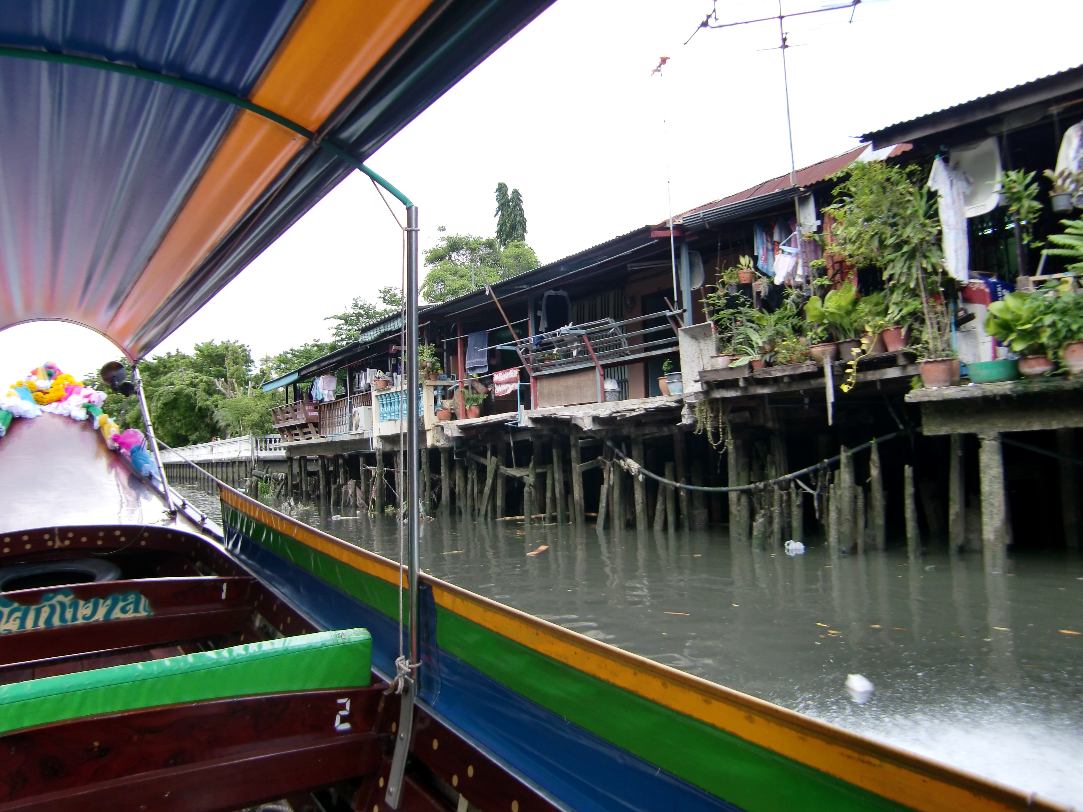千バーツも払えば、1隻貸し切りで1時間ほど川の運河をクルーズしてくれます。そこには日本人には考えられない『よくこんな所に住めるな』というような貧しい生活をしている人が・・・。でも表情は明るく、『豊かさとは何か?』と考えさせられる。こういう風景を見るのも素晴らしい体験です。