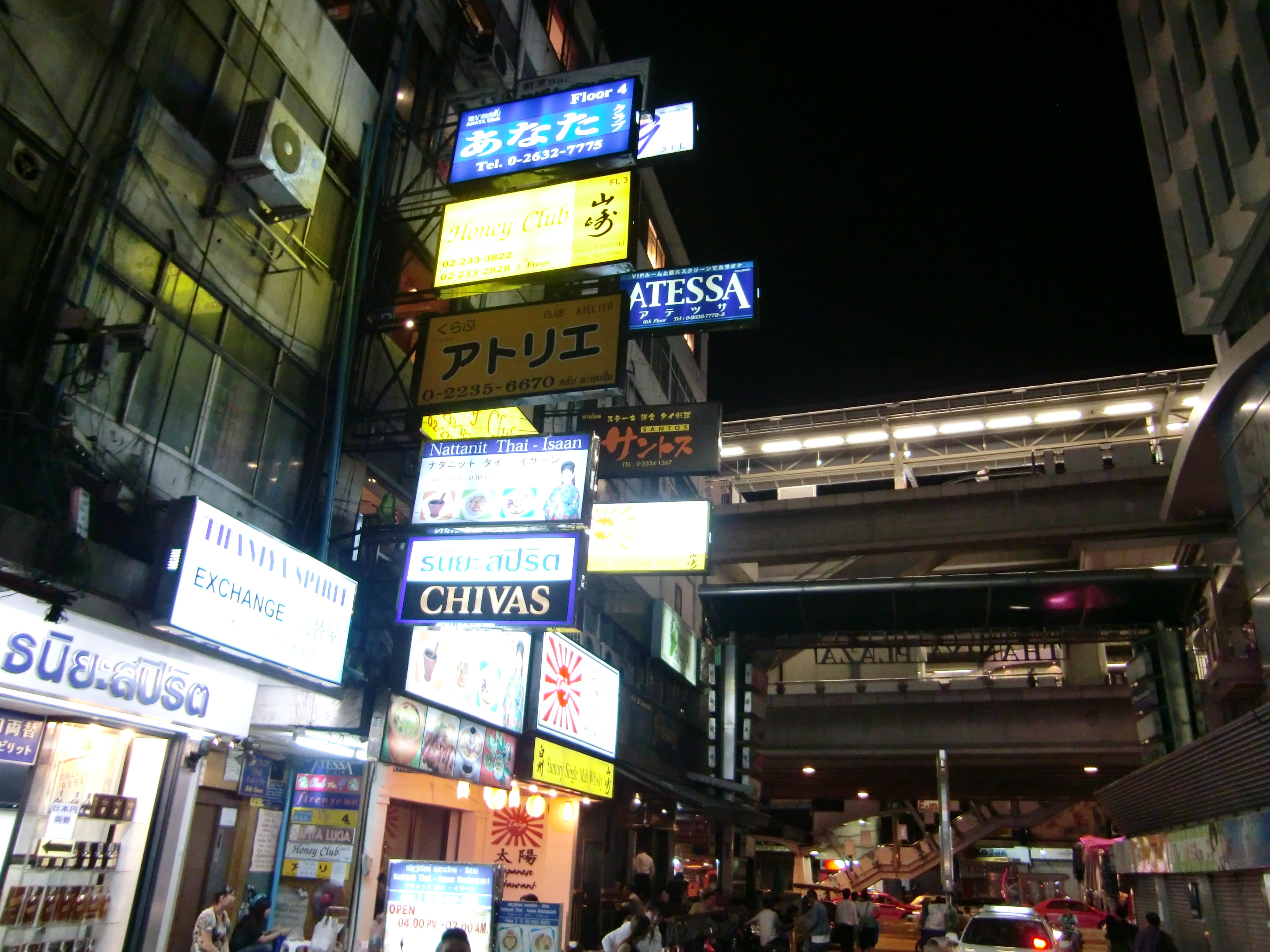 004006夜はタニヤという飲み屋街があり、カラオケが大好きな私には天国なのです。御覧のようにそこはまるでミニ銀座か新地といった感じで、日本語の飲み屋の看板が所狭しとでています。