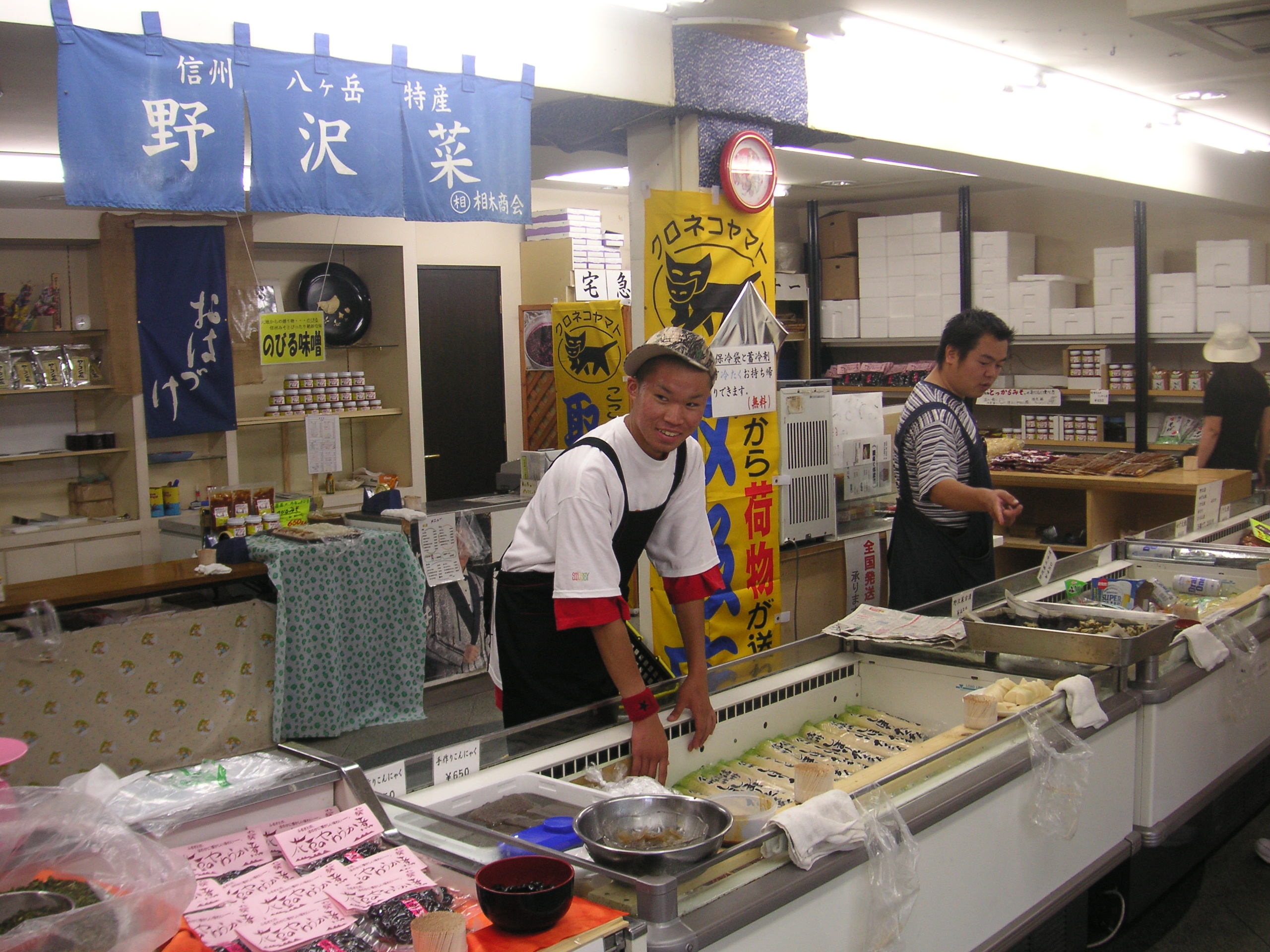 ピナコラーダのパイナップルをかじりながらデーラーと仲良く会話を楽しむ(笑)。