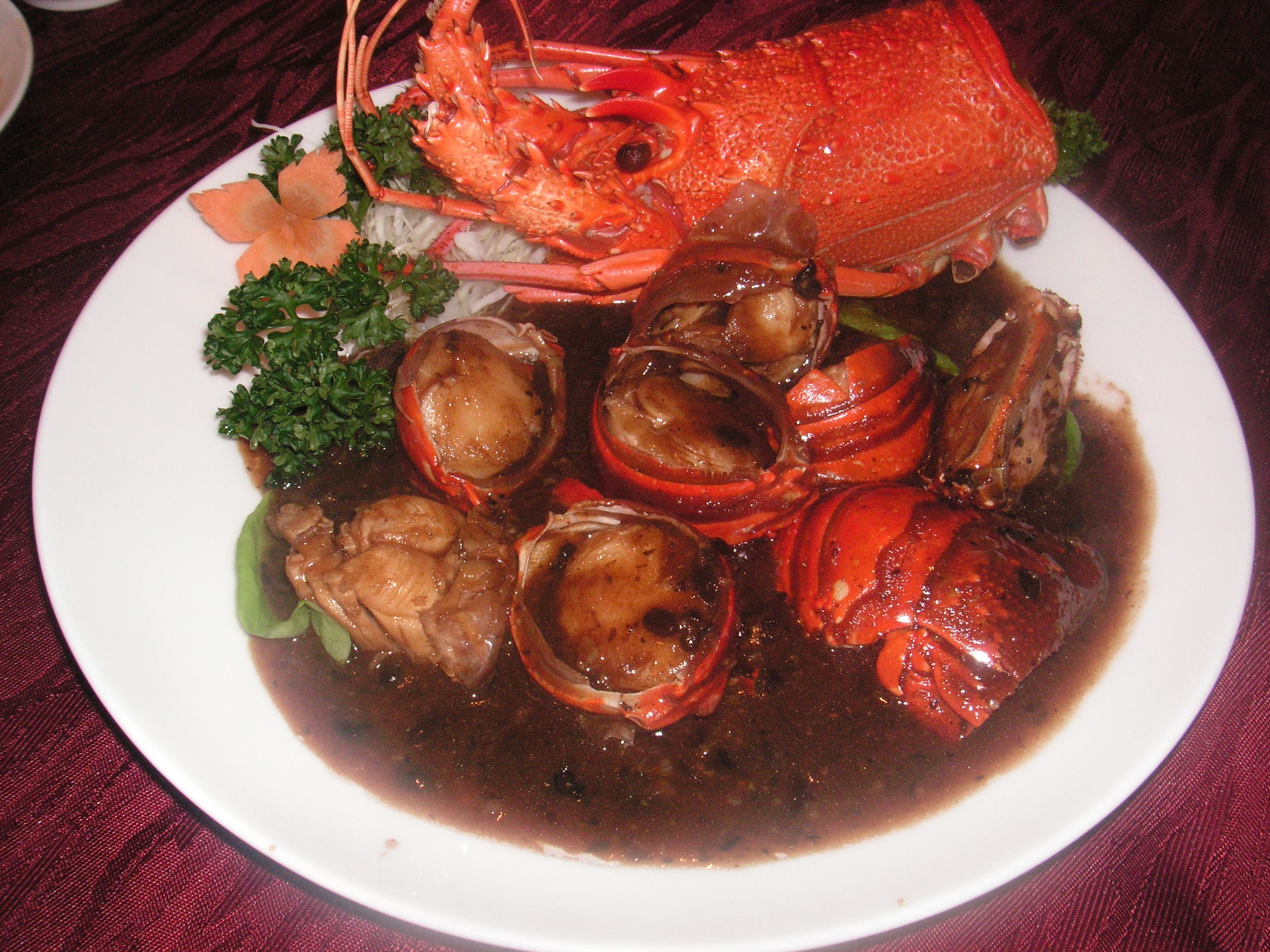 左はロブスターの梅ソース炒め、右は同黒豆炒め。