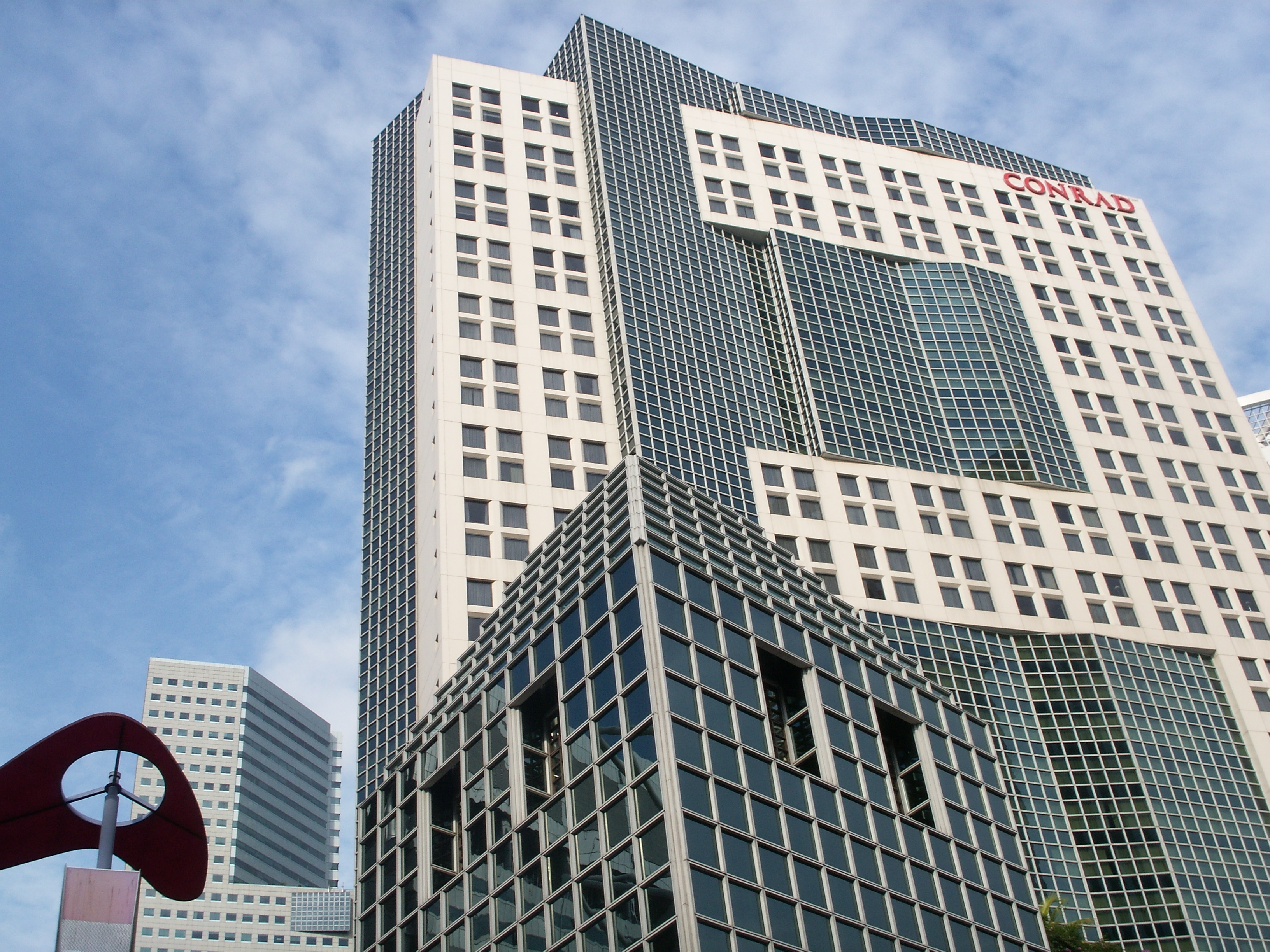右は水族館。島全体がテーマパークって感じ。宿泊先のコンラッド・ホテル。マリーナの高層ビル群が見え絶景でした。ヒルトン系の最高ブランドだけあって内装は豪華です。この地区は他にオリエンタルやリッツ・カールトンなど高級ホテルコンラッド1が多い。