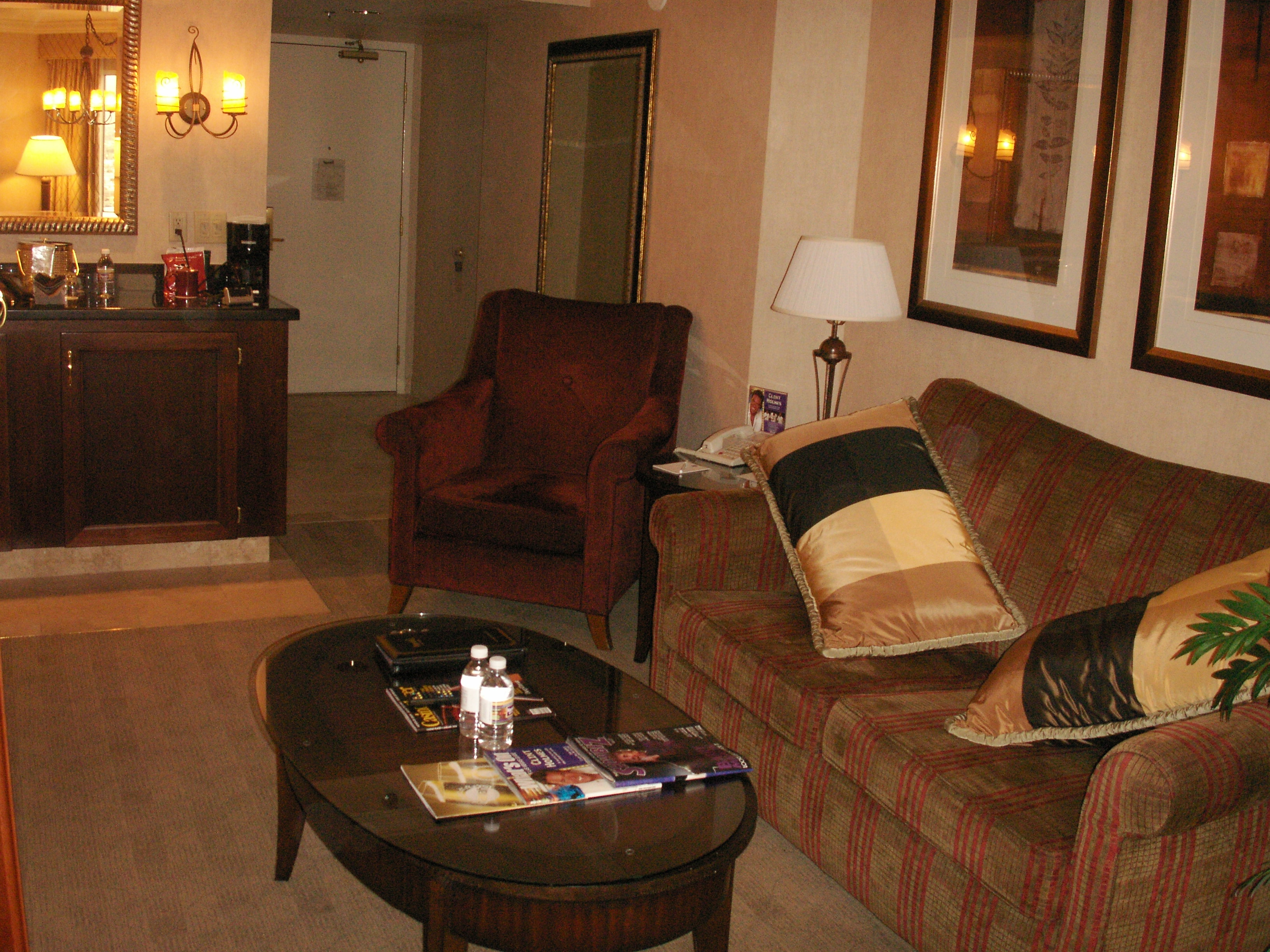 もらった部屋は御覧の.スイート。リビングはこんな感じ。どうせ寝るだけなので勿体無い(笑)