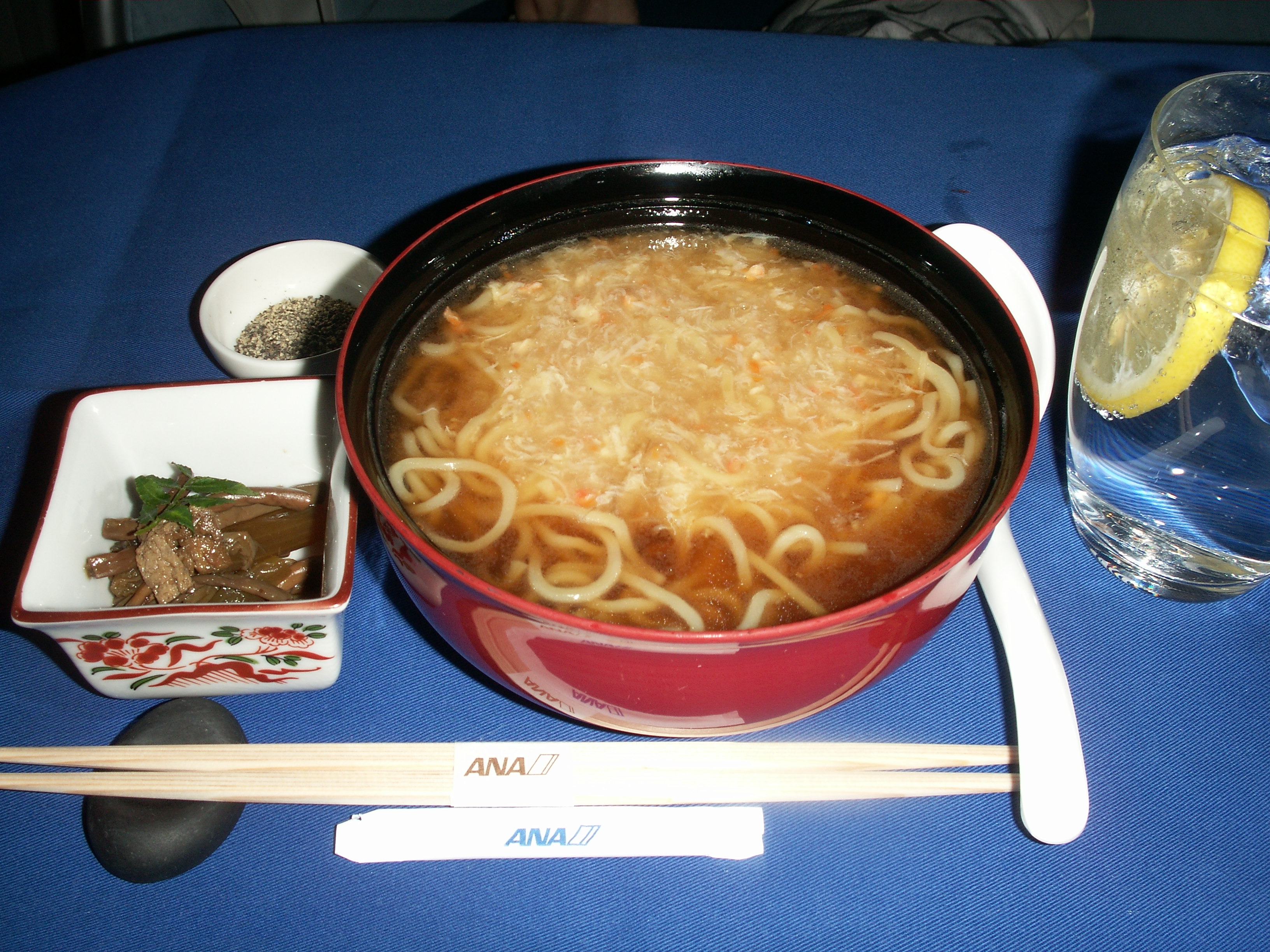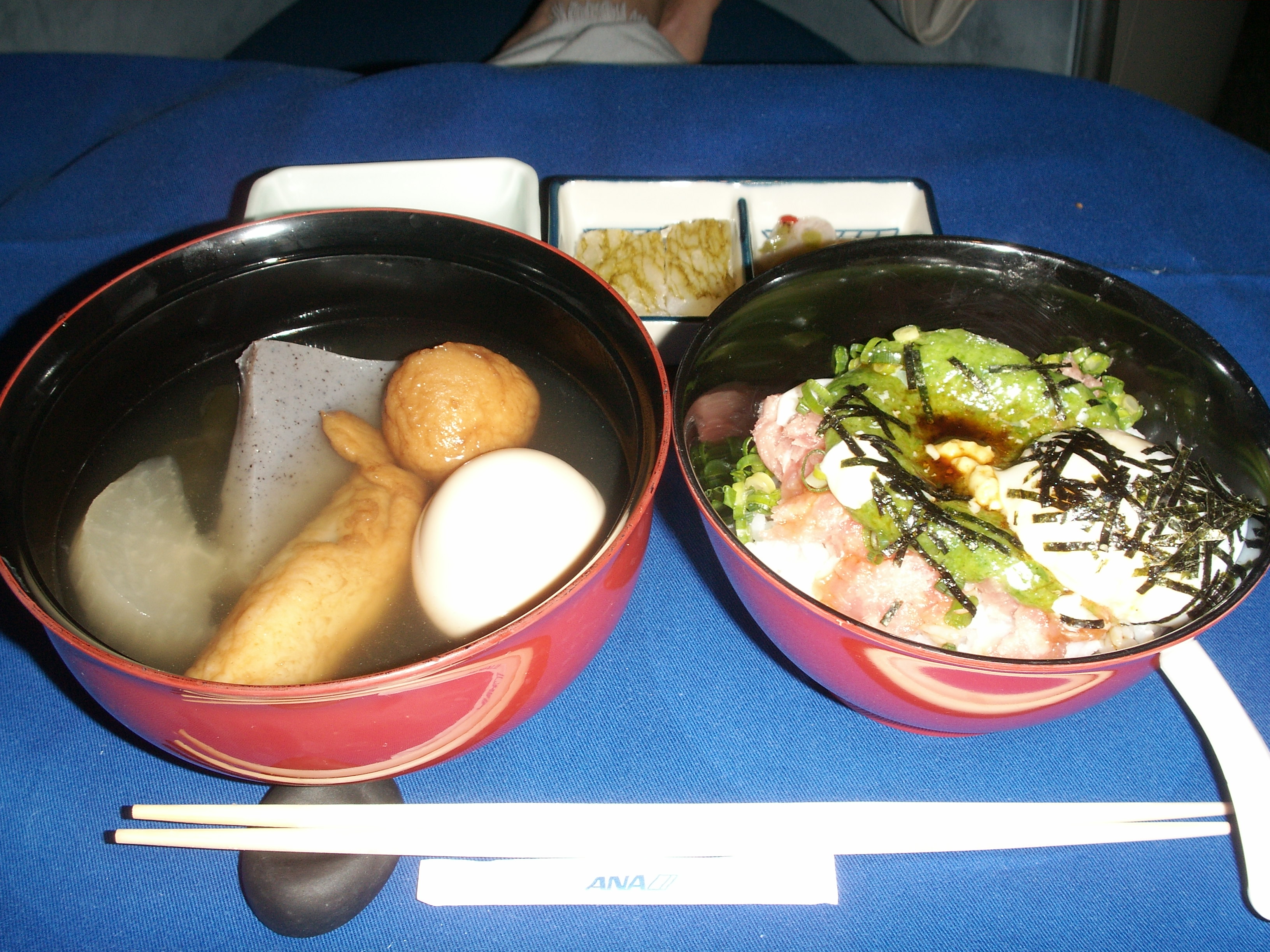 サービスでおでんや鉄火丼(中央)、ふかひれラーメン(右端)、うどん、やきとり等を好きな時にオーダー出来ます。