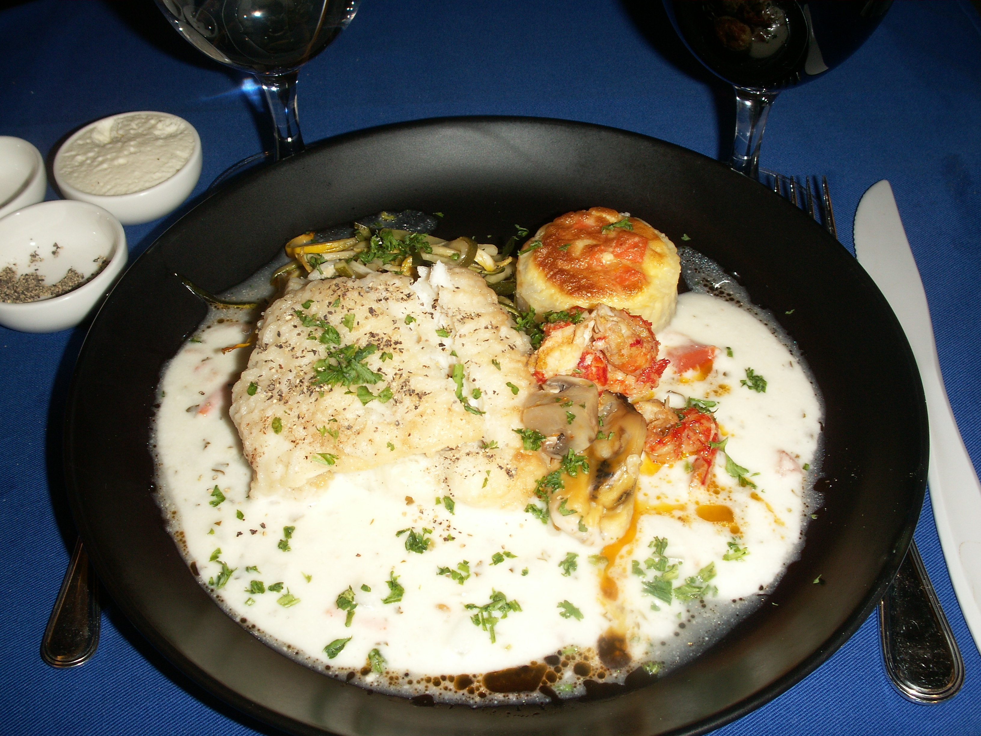 洋食のメイン。左は鹿肉の赤ワインソテー、右は舌平目のムニエル。とても食べきれない・・・・・
