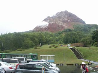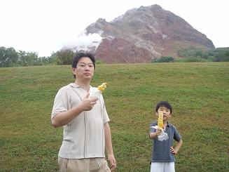 ローカルバスで昭和新山へ。あいにくの小雨。ここでトウモロコシを食べる。これが甘くて美味しかったですねぇ〜。さすが北海道って感じ。