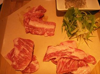 左が熊の肉、右がイベリコ豚の霜降り。共に美味!