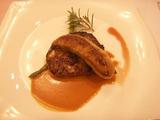 左は夕食会のメイン料理、牛フィレ肉のフォアグラ添え。フォアグラが大きいのにはビックリ!