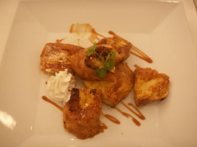 このお店の目玉であるフレンチ・トースト。スイート通である甲田さん好みの味。食感のあるパン・プディングって感じで、メープルシロップがマッチしています。
