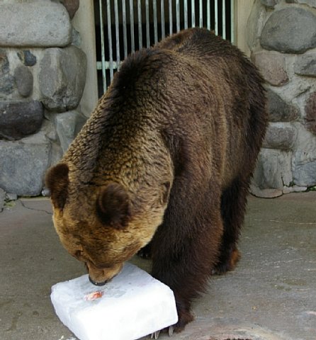 やっぱり夏と言えば氷ですね!!ですが、ただ氷だけでは物足りないので今回は氷の中にイナオ君の大好きなリンゴを2つ入れてあげました。(よく白いクマさんでやっていますが・・・) この氷を作るのに−30°Cの冷凍庫で3日間もかかりましたv(^o^ )