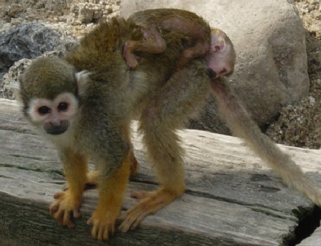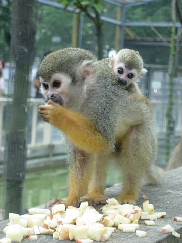 カピバラに乗ることで人気の出たリスザルに赤ちゃんが産まれました。(^〇^)/