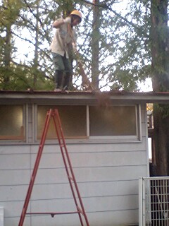 と言う事で屋根の上に溜まった落ち葉や枝の掃除です♪