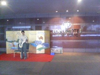 その感謝祭には600人程のご招待された方々が御越しになるとのことで覚悟を決めて行きましたが、会場がホテルのロビーと言うことで気づかずに素通りしてしまう方々と「キャー」と逃げていってしまう方々と様々です。