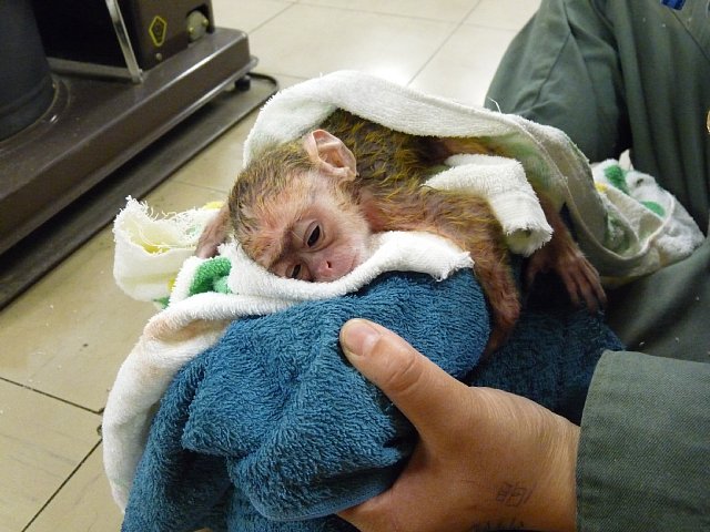 先輩飼育係、piroさんをすぐに呼び相談し、赤ちゃんを取り上げて人工哺育にすることになりました。取り上げた直後の写真はこちら
