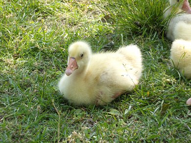 今年は17羽です。生まれたばかりの雛はニワトリと一緒で、黄色い羽毛で覆われています。鳴き声も「ガーガー」ではなく「ピヨピヨ」と鳴きます。1ヵ月も過ぎると次第に親のような羽根が少しずつ生えてきてしまいます。その間は毎日運動させるため、園内を連れ回したりしていました。ここで一旦非公開になりますが、10月末にはガチョウ広場の親たちと一緒に生活することが出来ることでしょう。