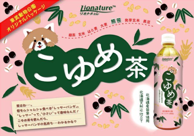 東武動物公園30周年記念に向けて開発した東武動物公園オリジナル笹茶「こゆめ茶」が、ふれあい動物の森オープンと同時に直営売店「わとと」と園内売店や東武鉄道駅沿線の売店にて発売しています。「こゆめ茶」は、東洋インキ(株)様、伊藤園様と凸版印刷様のご協力のもと、2年余りの歳月を経て、お子様からお年寄りまで喜ばれるように飲みやすくマイルドにブレンドしました。ブレンド成分として熊笹、緑茶、米、はと麦、大麦、発芽玄米、黒豆を使用し開発しました。また、ラベルにはピンク色を基調にレッサーパンダの顔をアクセントとし、可愛らしいデザインになっています。