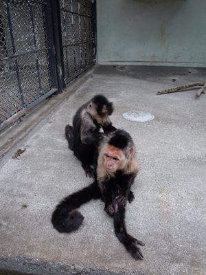 モンキーワールドにはノドジロオマキザルのタロウ君とヨシコちゃんのオシドリ夫婦が暮らしています。(サルなのにオシドリ...?)
