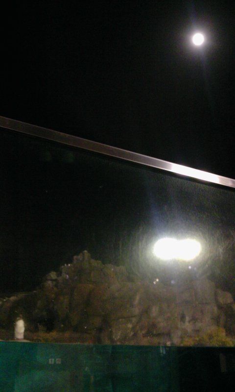 ペンギンプールがライトアップされ、ペンギンを見ながら、夜空に昇った月を観るそんな楽しみ方もできます。