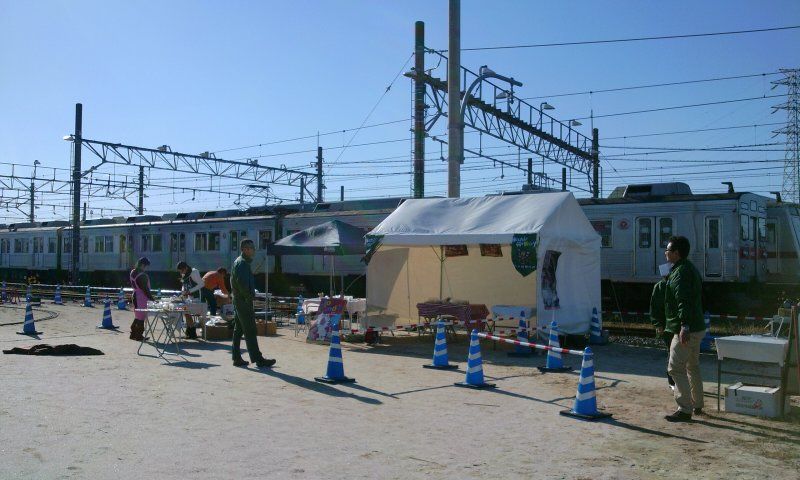 朝8時に東武動物公園を出発し、約40分後、南栗橋車両管区の会場に到着、たくさんの東武グループの方々や地元企業の方々が各ブースにて準備を進めているので、私達も東武動物公園ブースに向かい設営開始。