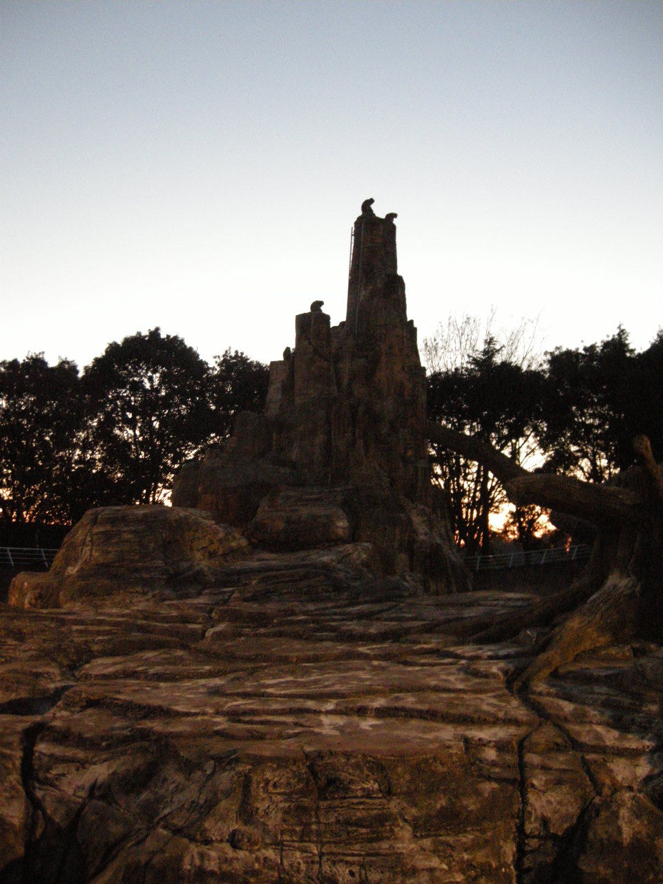 そして、現在、イルミネーションで綺麗になっている園内。動物園エリアはというと夕暮れにはサル山を背景に夕日が沈み、昼と夜の間の光景を幻想的な姿でみることができます。