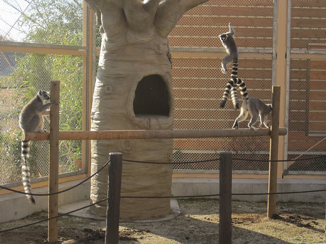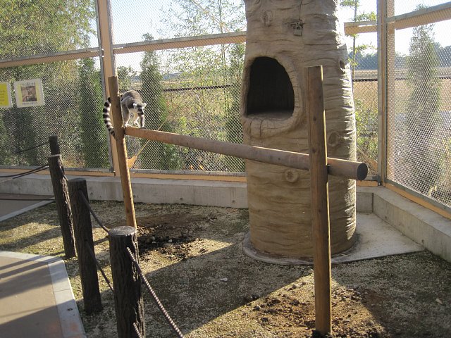 次の段階ではロープの設置もしてみたいと考えています。ワオキツネザルはあまりロープを使うイメージがありませんでしたが、意外にも人止め柵のロープを使用し、綱渡りをしたり、ロープの上に起用に座っていたりと、ロープを使用していることも見られます。ですので、次はロープを設置し、遊んでもらえるようにしたいと思います。