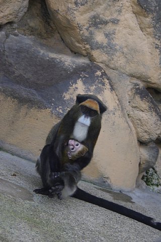 キセレちゃんは大切な赤ちゃんを守るため、いつも大事そうにギュッと抱きしめ、運動場にある岩の陰に隠れていることもあります。