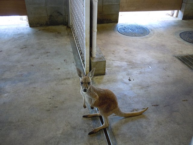 お家の中の換気のために、扉を開けて、カンガルーさんが入って来られないように板で塞いじゃうのですが、下のわずかな隙間から中に入ってしまうのです。