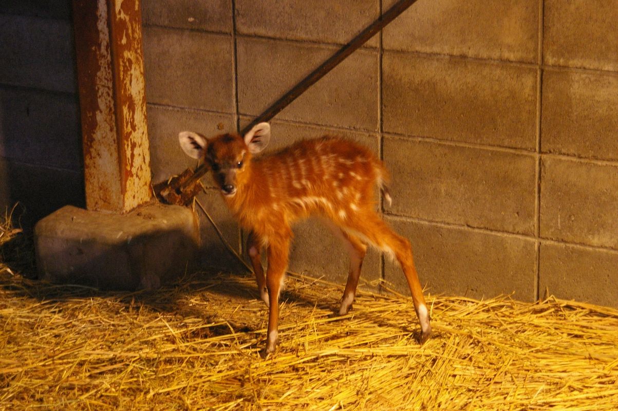 極めつけは、シタツンガ。シカぐらいの大きさのウシの仲間ですが、6月5日に出産。(―_―)!! 予想外でした。