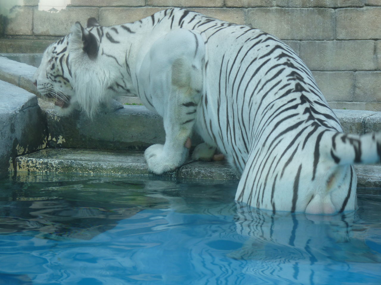 そして暑い日は自分から水の中へ!!小さい頃は飼育係がプールへ誘導すると水の中で、遊んだりダイナミックに動いてくれてましたが、最近は大人になって性格も落ち着いてきてしまって、ガイド中はプールの中に入らなくなってしまいました。