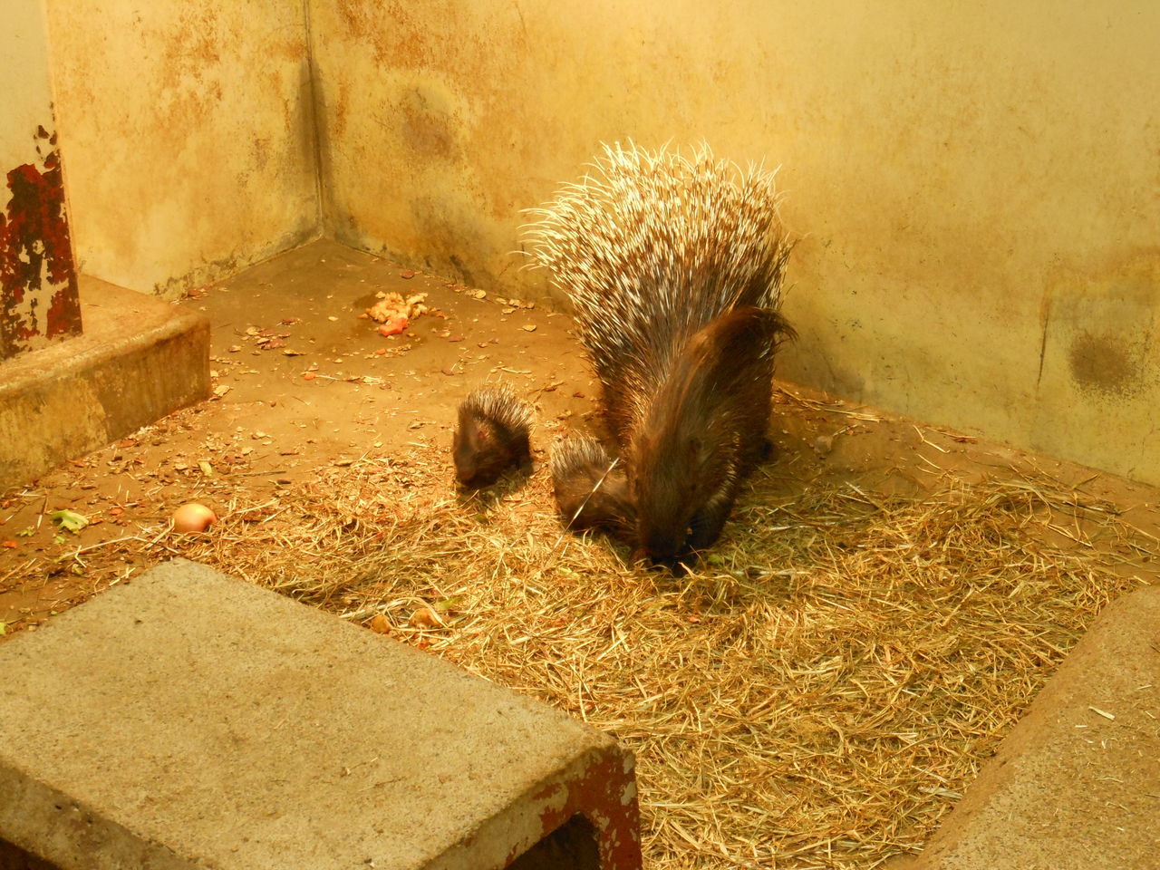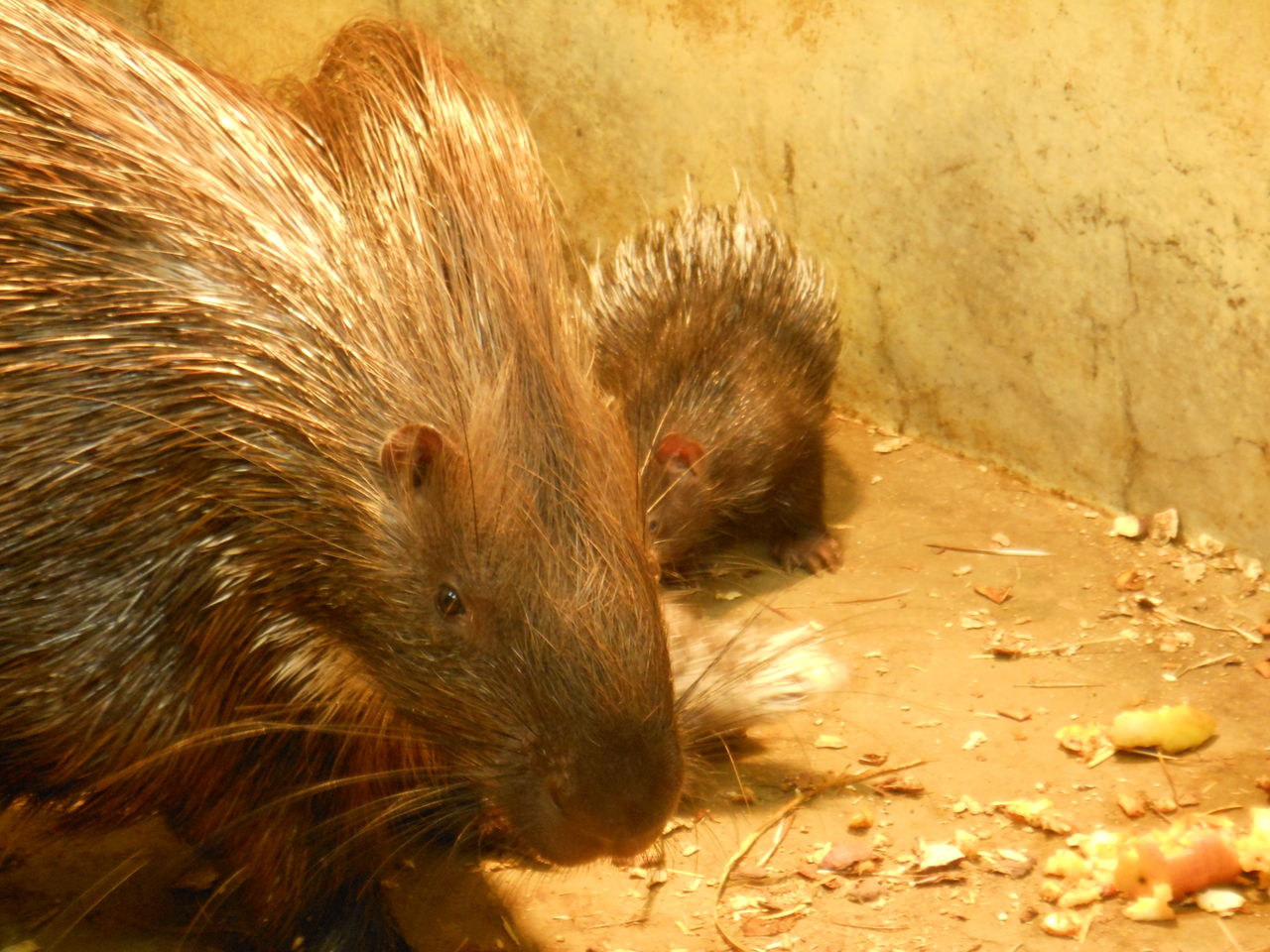 5月16日にヤマアラシの赤ちゃんが生まれました。1頭は生まれた時、後足がなかなか立たずとても心配しましたが、現在は2頭元気に育っています。