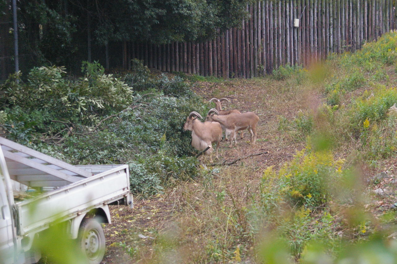 休園日では展示場への砂入れや動物舎の工事などなど、開園時にはなかなか出来ない作業を行います。サバンナエリアでは、先週の月曜日にダチョウ展示場エリアの木の伐採を行いました。フェンス沿いに生えている木が成長し穴を開けてしまったしまう恐れがあるのです。