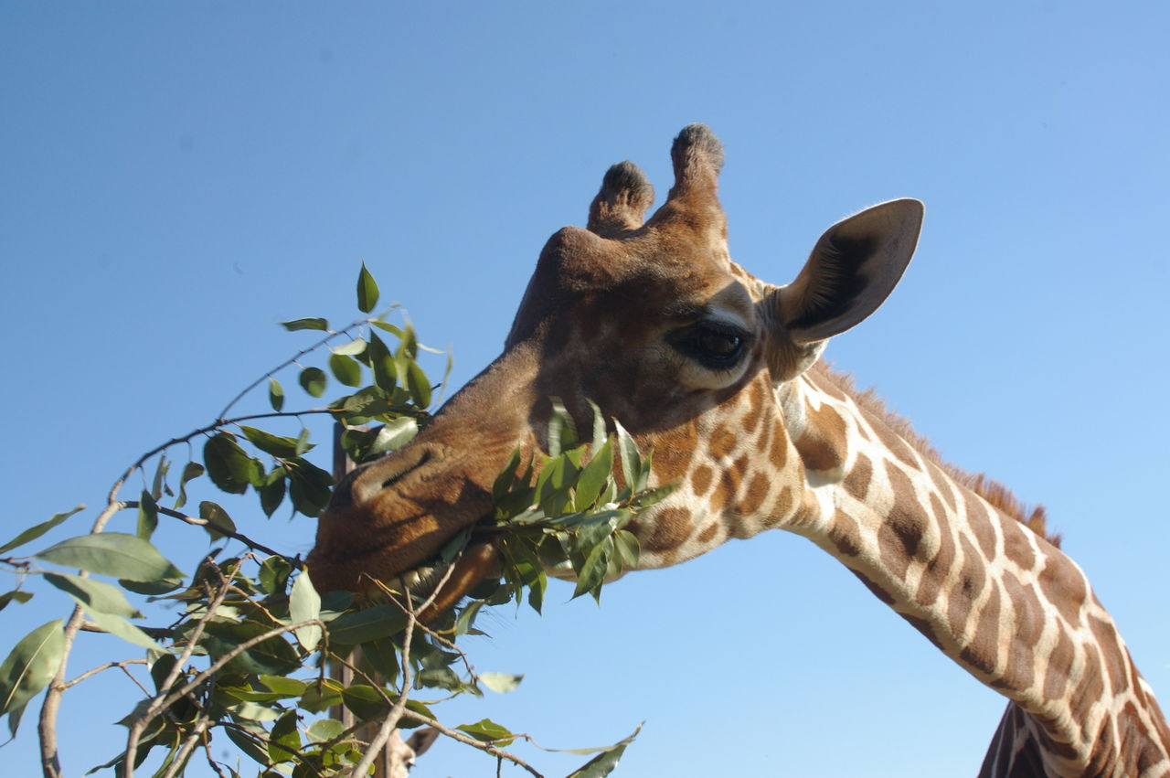 丸一日かけて伐採した木は、山のように多くありました。このまま捨てては、もったいないと言う事で、キリン、ゾウ、サイなどの草食動物に与えることにしました。