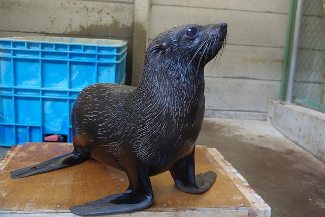 ミナミアメリカオットセイの男の子です。推定1歳。来た当初の体重は20kg。