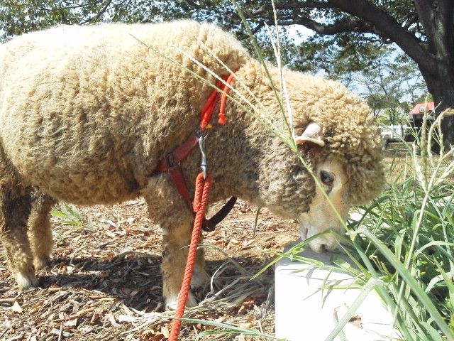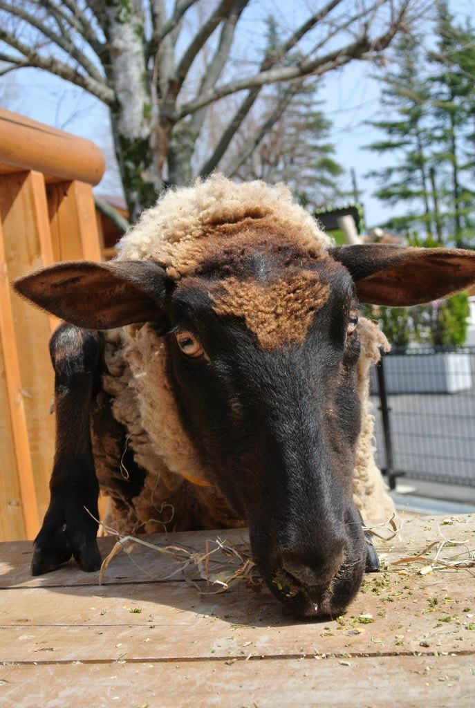 顔の色が違う2種類のヒツジさんが飼育されています。