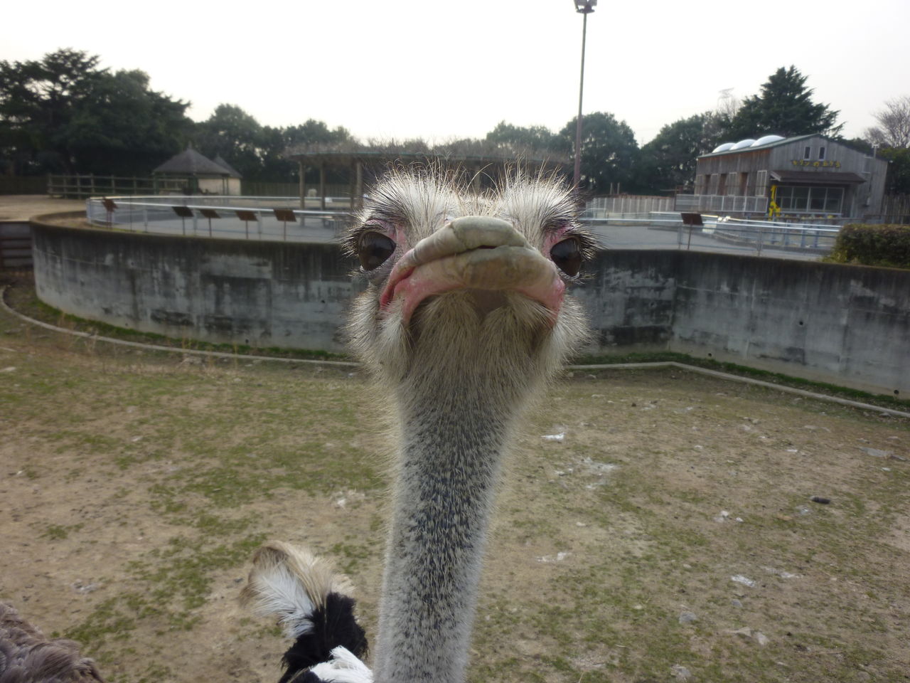 どや顔。衝撃的でしたがダチョウのクチバシはそんなに痛くはありません。恐ろしいのは恐竜のような立派な脚から放つキックです。みなさんも当園に遊びにきた際にはサバンナでダチョウに追いかけられる私にも注目してください。