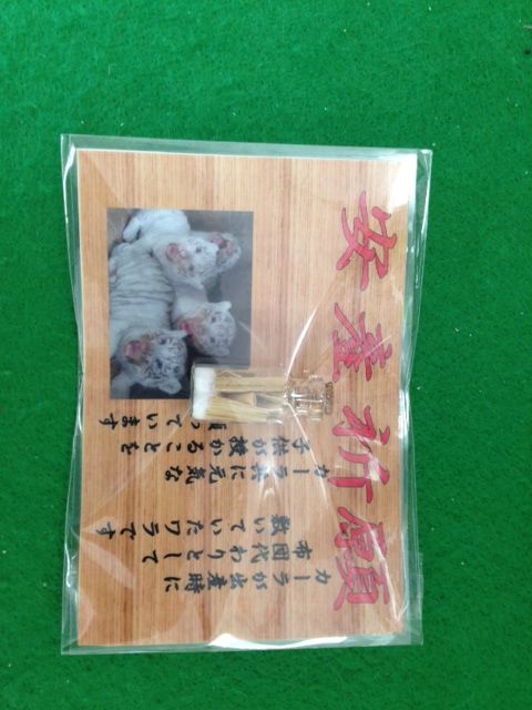 今話題のホワイトタイガーの赤ちゃん。その赤ちゃんが暮らしているお部屋で使用したワラをビンに入れてあります。無事に4頭の赤ちゃんが母子ともに健康に産まれましたので、安産祈願のお守りとして商品にいたしました。